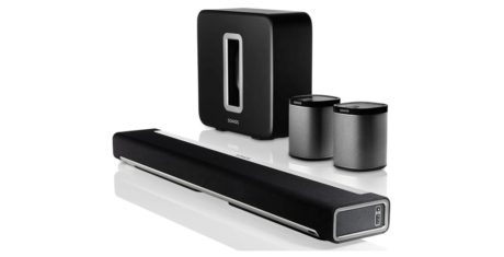 Batterilevetiden er så begrænset til fem timer, mens den er ti timer med dem som baghøjttalere i et surround-setup. Baghøjttalerne genoplades ved docke dem på hver side af soundbaren, når den ikke er i brug.