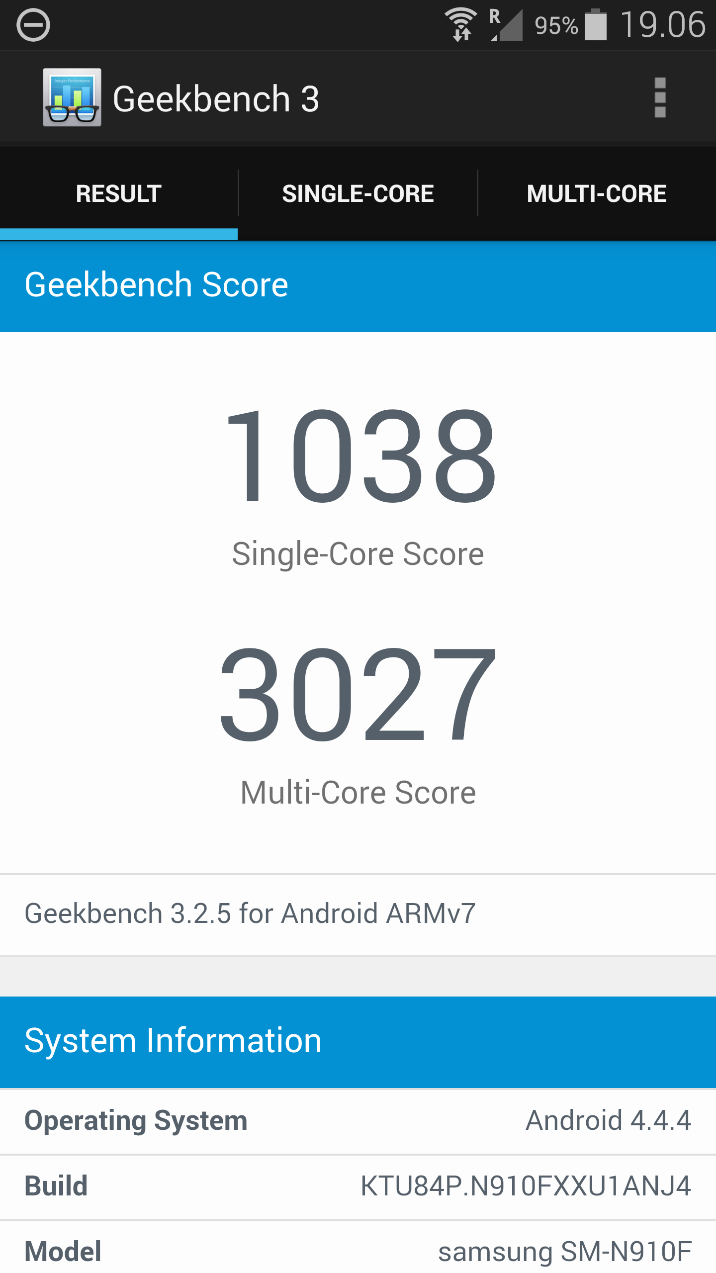 Med et testresultat i Geekbench 3 på henholdsvis 1.038 point (single-core) og 3.027 point (multi-core) er Galaxy Note 4, hvad det samlede resultat angår, en smule bedre end iPhone 6 Plus, men på trods af den lynhurtige processor og hele 3 gigabyte ram oplever vi små pauser, når man multitasker eller starter apps.