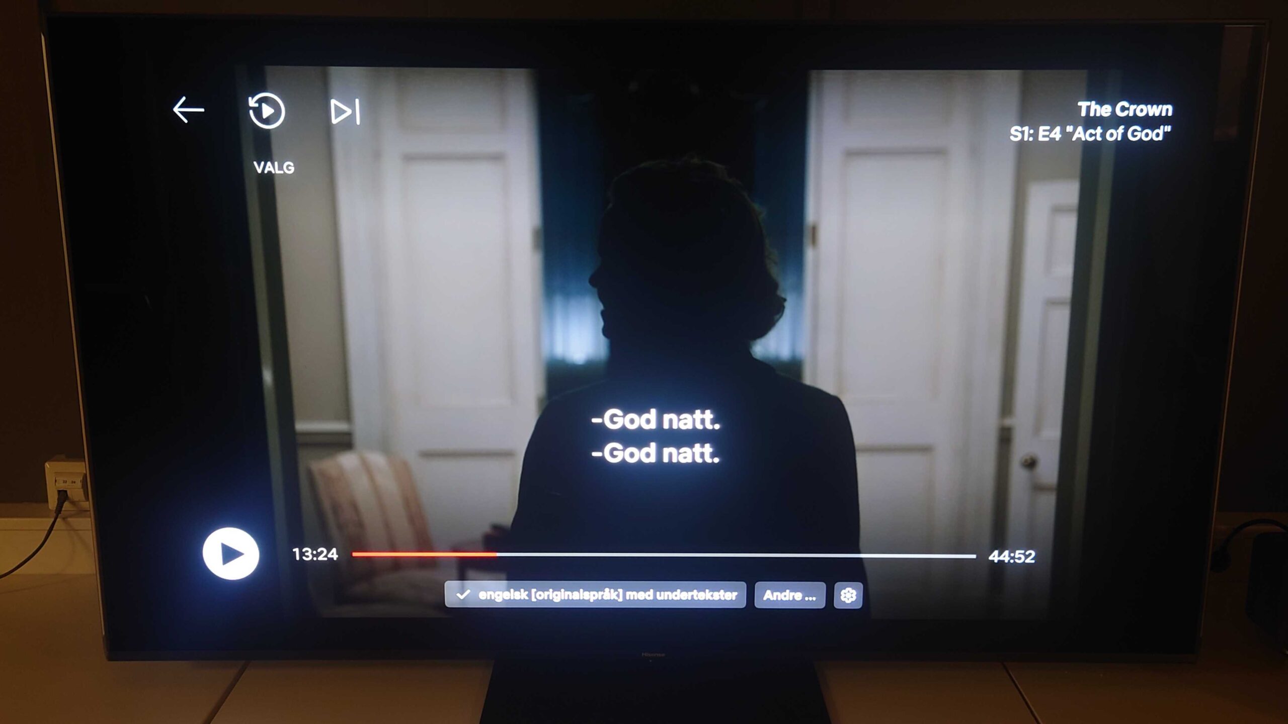 Problemet med Netflix-app’en opstår, når TV’et skifter til HDR-mode: Her tolker skærmen de hvide undertekster som “hvideste hvidt” på linje med sollys og andre HDR-effekter, og så booster den lysstyrken til maksimum. Ikke godt!