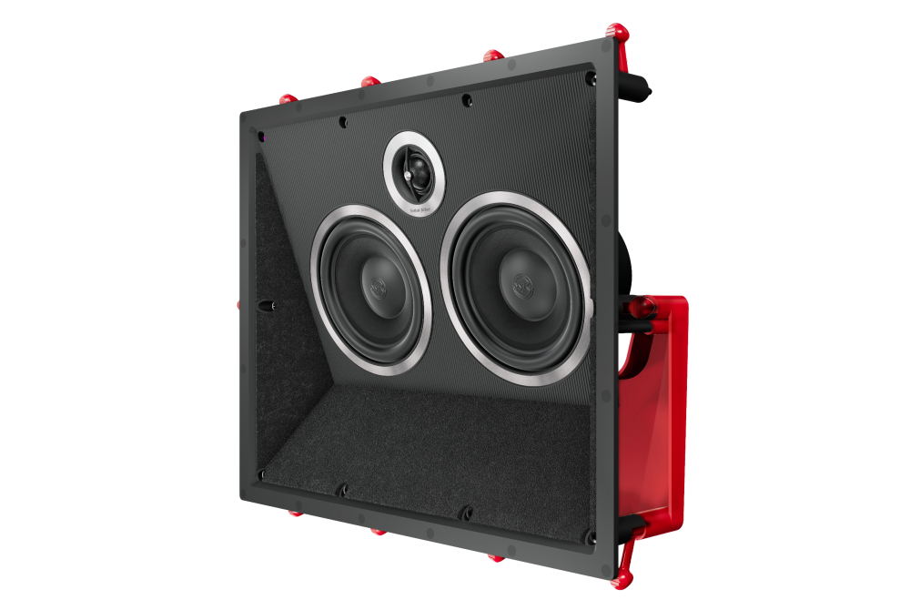Højttalerne er nemme at montere i en indfældet niche og har magnetiske fronter. De er monteret på en åben bagramme, og der findes også en subwoofer til indbygning.