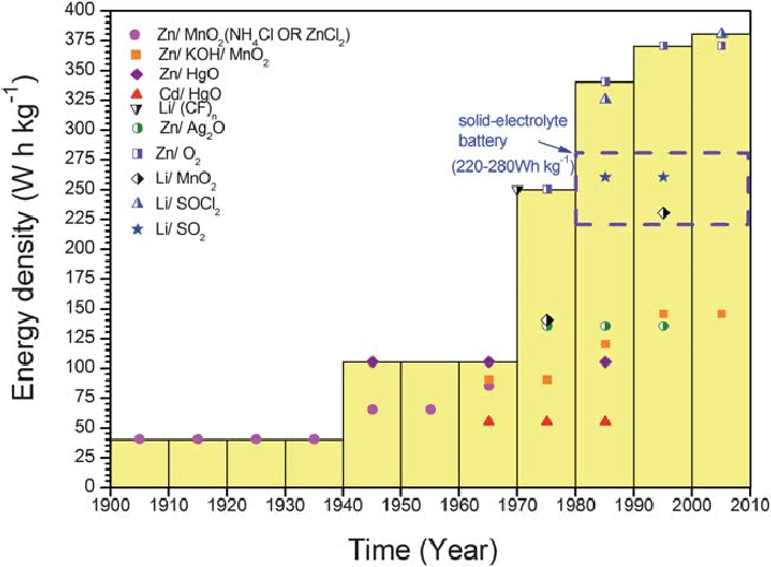 Spol små tyve år frem, og hvad er der sket? Meget lidt. Teknologien er ganske vist blevet finpudset i løbet af dette tidsrum, men alligevel er det kun lykkedes at øge energitætheden med under 3 procent (fra 370 til 380 watt-timer pr. kg) siden starten.