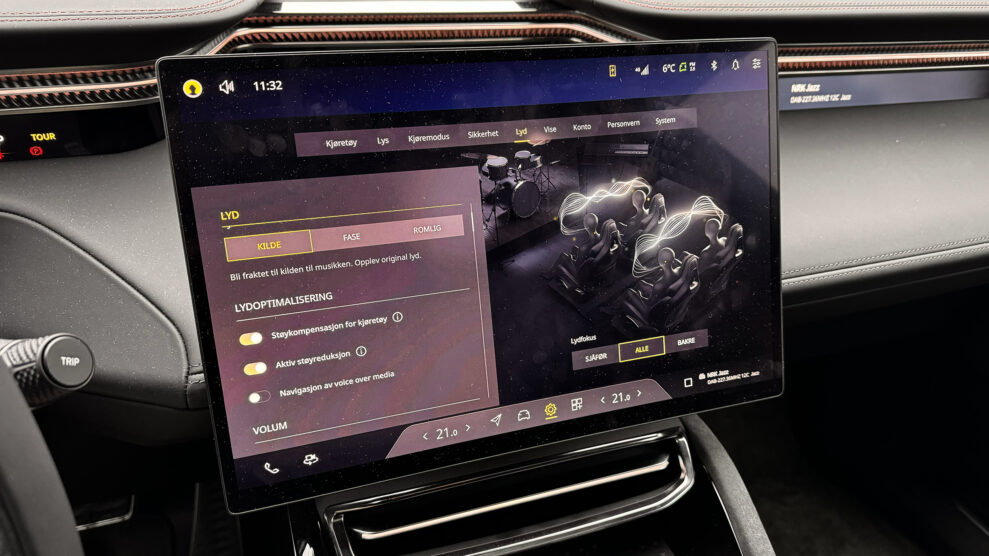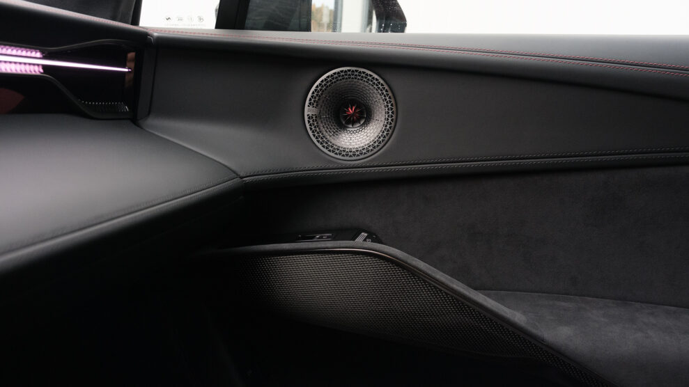 En af fordelene ved at vælge S-udgaven af Eletre er lydanlægget fra KEF. Som er fuldt på højde med det bedste fra Bowers & Wilkins og Burmester. Her er der tale om Premium-versionen fra KEF, som er specialtilpasset Eletre og baseret på teknologien fra KEF LS60 Wireless. I praksis betyder det, at du får KEF’s særlige UNI-Q koaksiale enheder i dørene og subwoofere i midterkonsollen.
