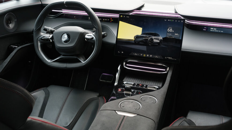 Jeg kunne have talt om Colin Chapman og Lotus’ DNA, om den lavest mulige vægt, direkte styring og om form, der følger funktion. Som lige siden starten i 1952 har været mejslet i sten af Chapman. Som havde succes, i hvert fald på racerbanen, med den opskrift. Men Eletre markerer et paradigmeskift for Lotus, som, hvis vi ser bort fra den Lotus-baserede Tesla Roadster, aldrig har været i nærheden af batterielektrisk drift på hjul.