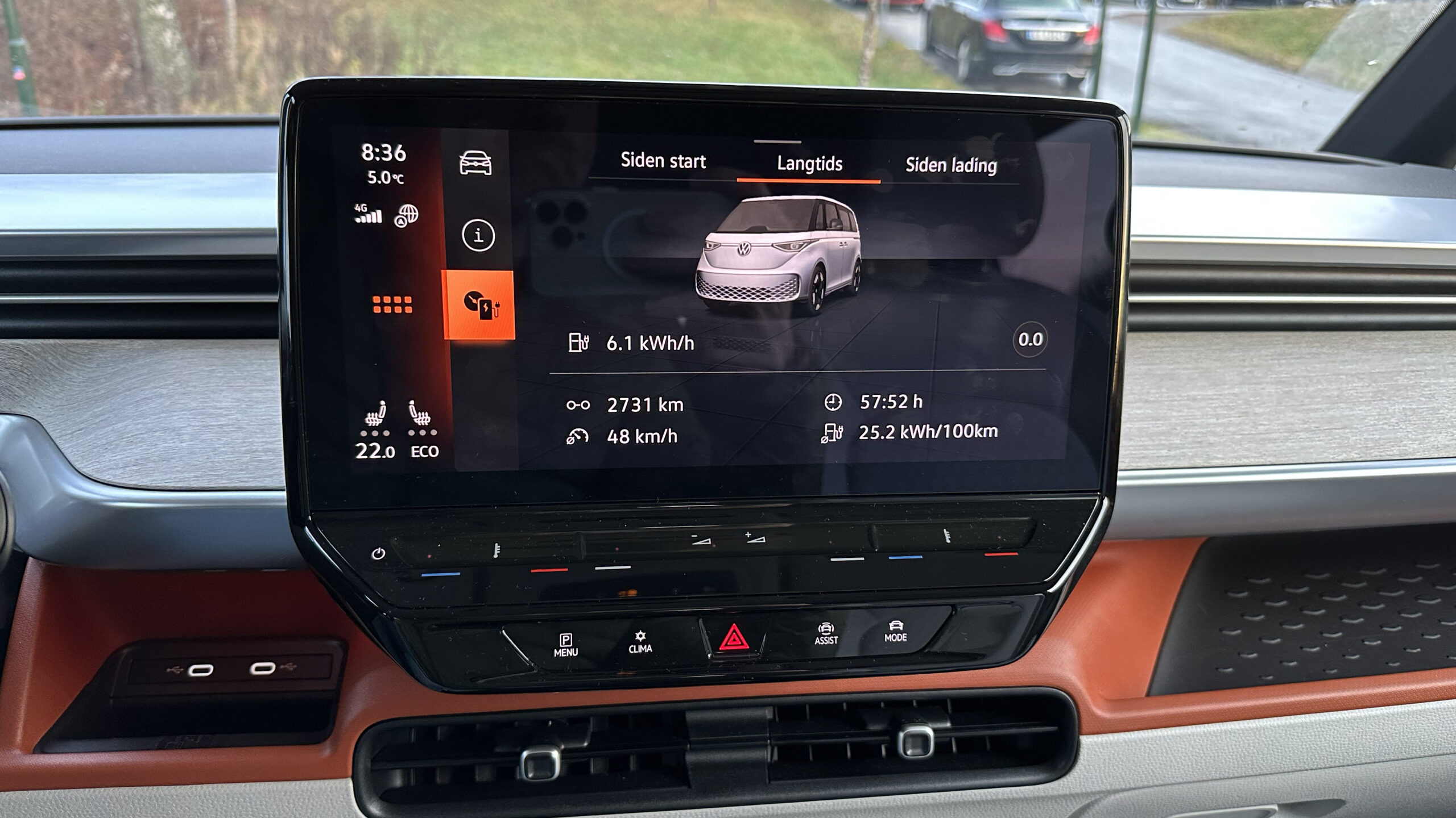 Den er dobbelt så høj som hos for eksempel Tesla Model Y, og kun lidt under, hvad jeg oplevede med førnævnte Mercedes EQV. Og eftersom batteriet er mindre i Buzz end i EQV, er rækkevidden også kortere.