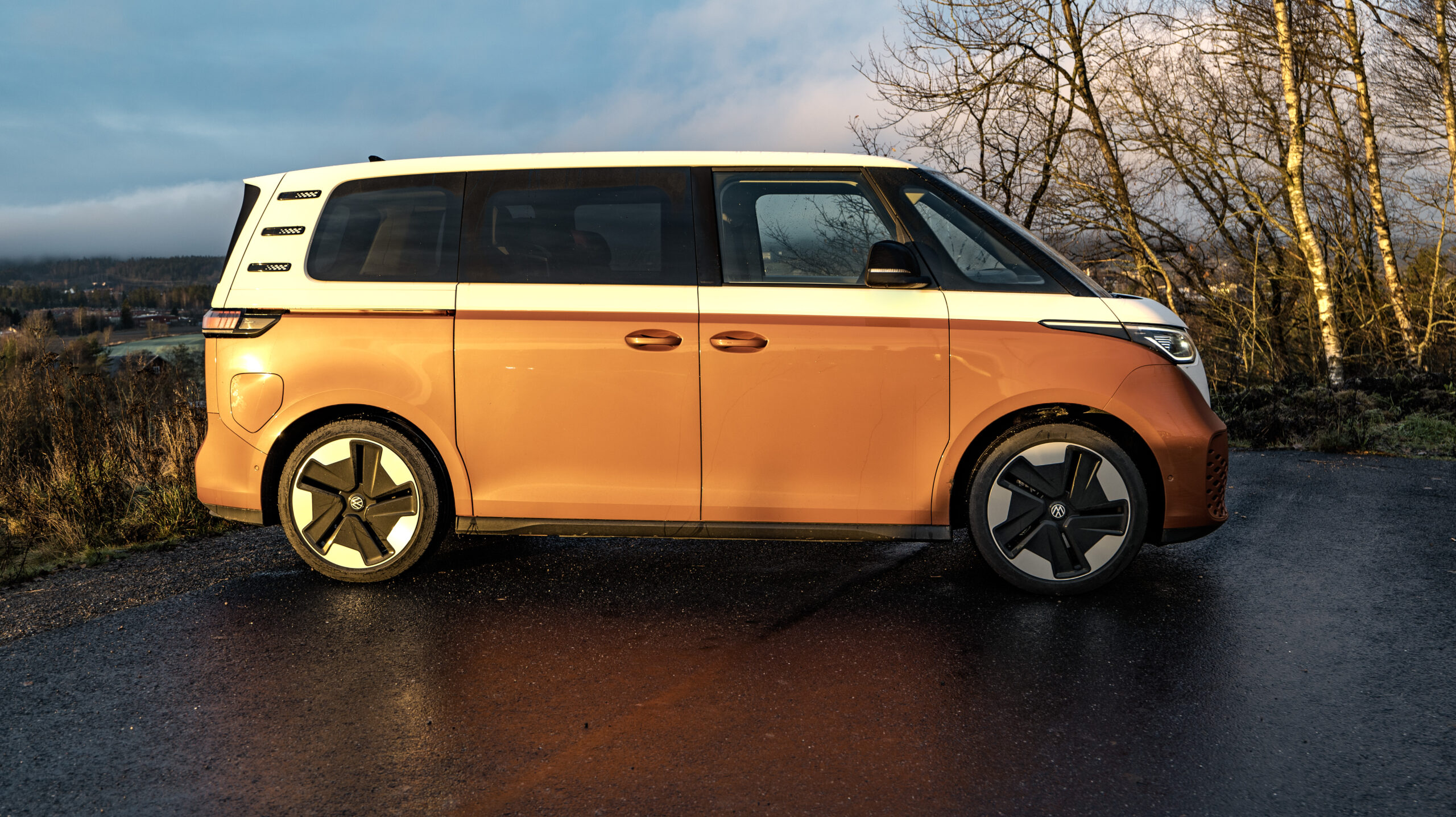 Vores testbil er tofarvet hvid og orange. Vildt cool og en tydelig flirt med den oprindelige, tofarvede ‘hippie-van’.