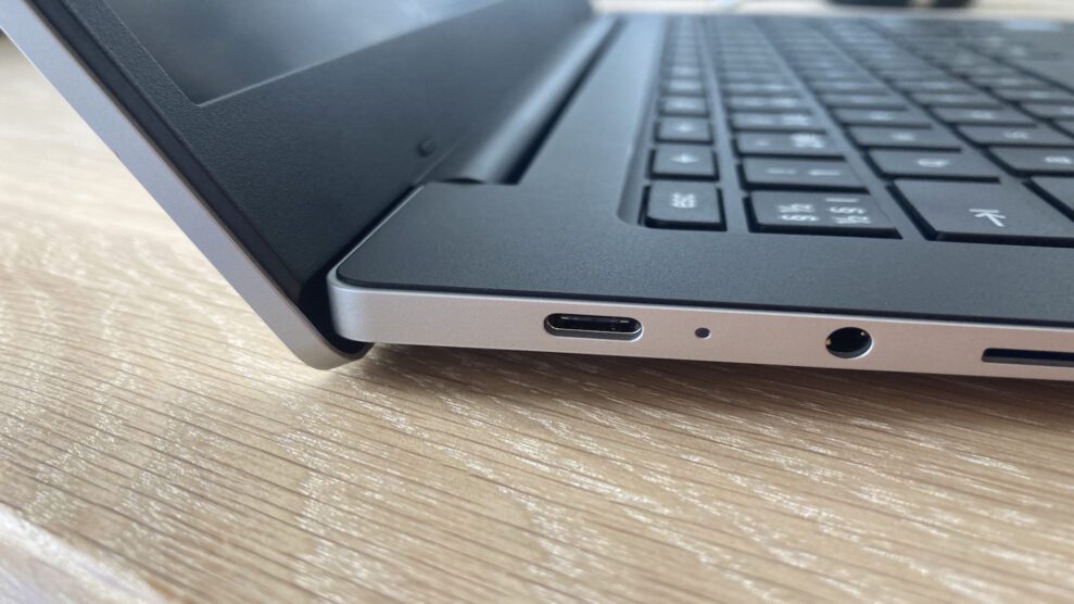 Når låget åbnes, afsløres et sort indre. Skærmens kanter og hele underdelen er i samme matsorte look. Tasterne er store og lige til at gå til. En touchpad på hele 14 cm (diagonalt) er nok lidt i overkanten og forstyrrer arbejdet, hvis håndleddet eller tommelfingrene rammer ved et uheld.
