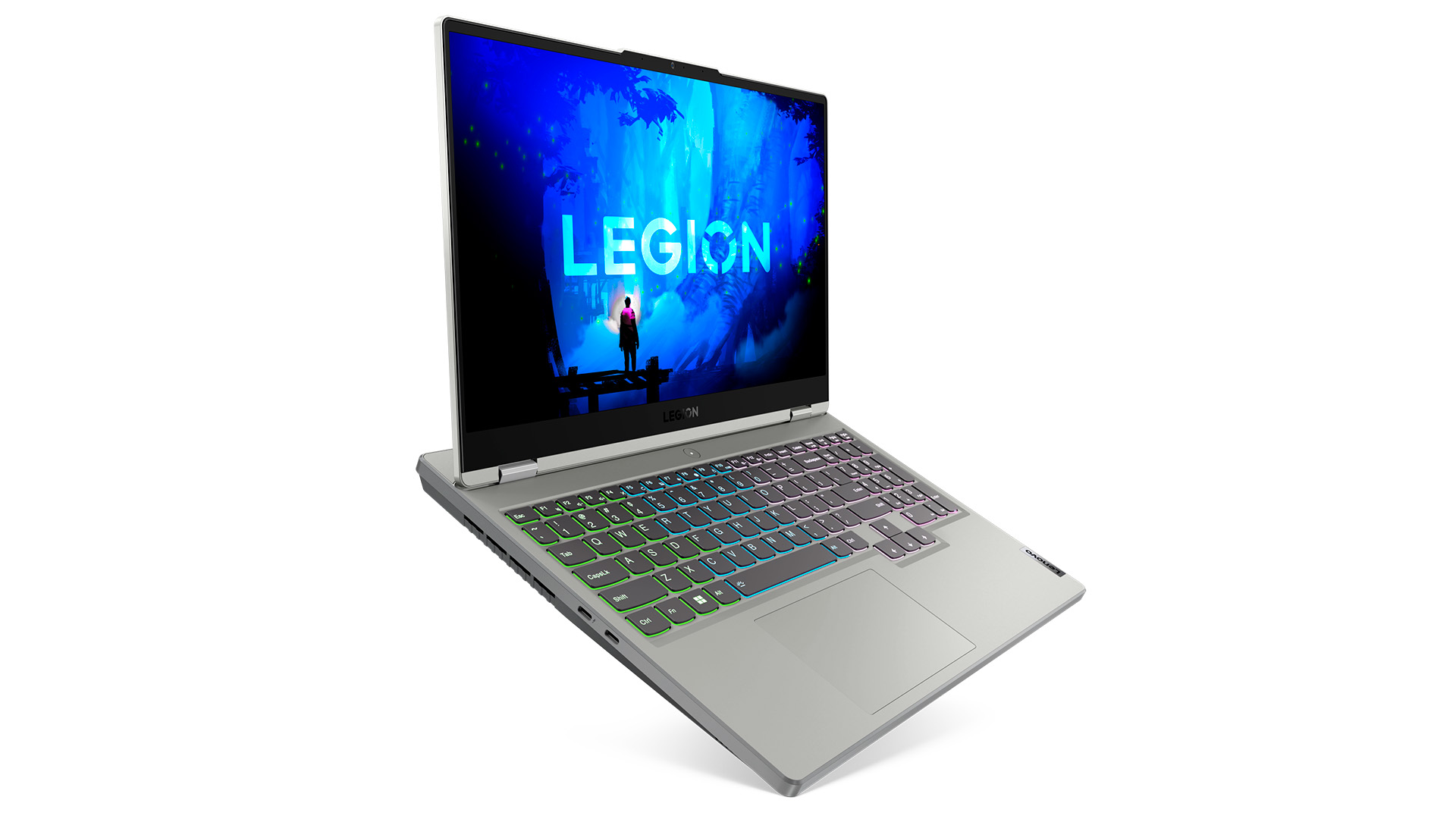 Den Lenovo Legion 5i, vi har fået til test, er en 15,6 tommer bærbar i et ret slankt titaniumgråt kabinet. Skærmen er hængslet nogle centimeter foran den bageste kant af kabinettet, hvilket dels får maskinen til at virke mindre og dels giver bedre plads til kølesystemet, der er altafgørende i en gaming-PC.