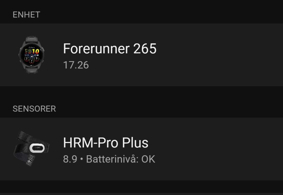 Hvis jeg vil, kan jeg forbinde pulsremmen direkte til Garmin Connect-app’en uden at bruge et ur. Nu har jeg også et ur til rådighed, så jeg vælger at forbinde alle enheder.