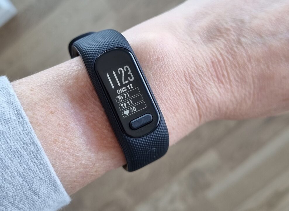 Garmin har (mindst) ét ur til enhver aktivitet og udøver, og i det righoldige udvalg finder jeg også træningsarmbåndet Garmin Vivosmart 5. Udseendemæssigt ligner det et hvilket som helst andet armbånd med en oval skærm og en sort silikonerem. Armbåndet er udskifteligt (str. S/M), hvilket er fint, hvis man har lyst til lidt forandring.