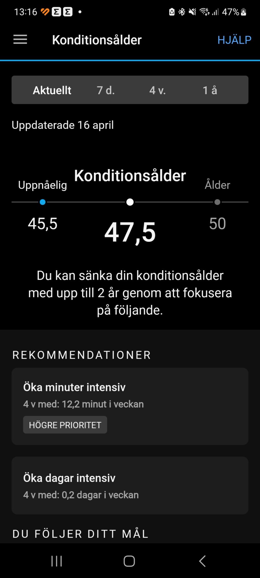 Hvis du tør, kan du bruge Garmin Vivosmart 5 til at finde din metaboliske alder, eller konditionsalder, som det hedder i app’en. Det er et estimat af, hvor veltrænet du er i forhold til din faktiske alder.