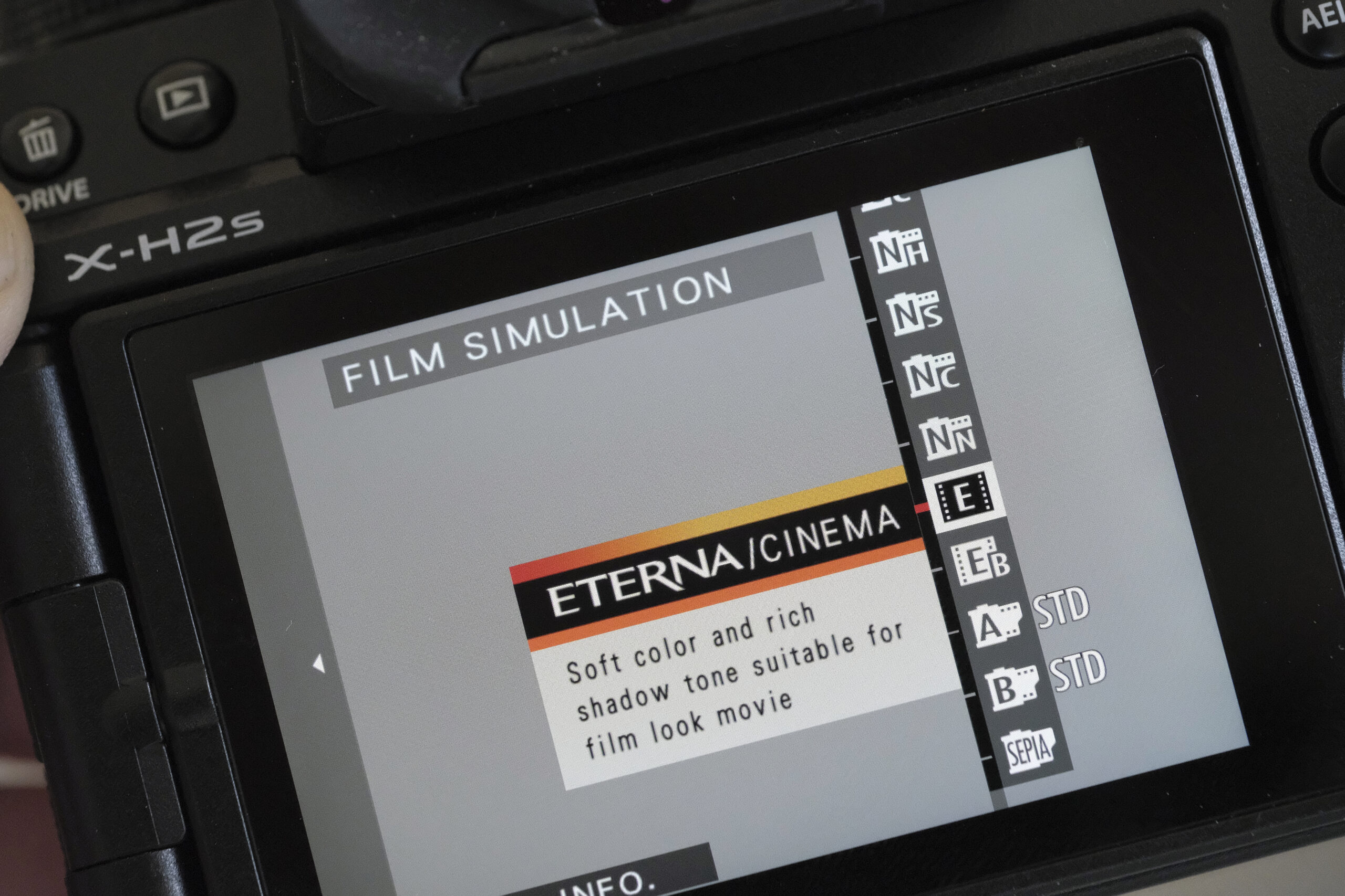 Det ene indstillingshjul på X-H2S er et programhjul, som kombinerer video med syv forhåndsdefinerede indstillingsbanker og filtereffekter. Kameraet er også udstyret med Fujis berømte simulering af Fujifilms gamle emulsionsfilm. Astia, Provia, Eterna osv.