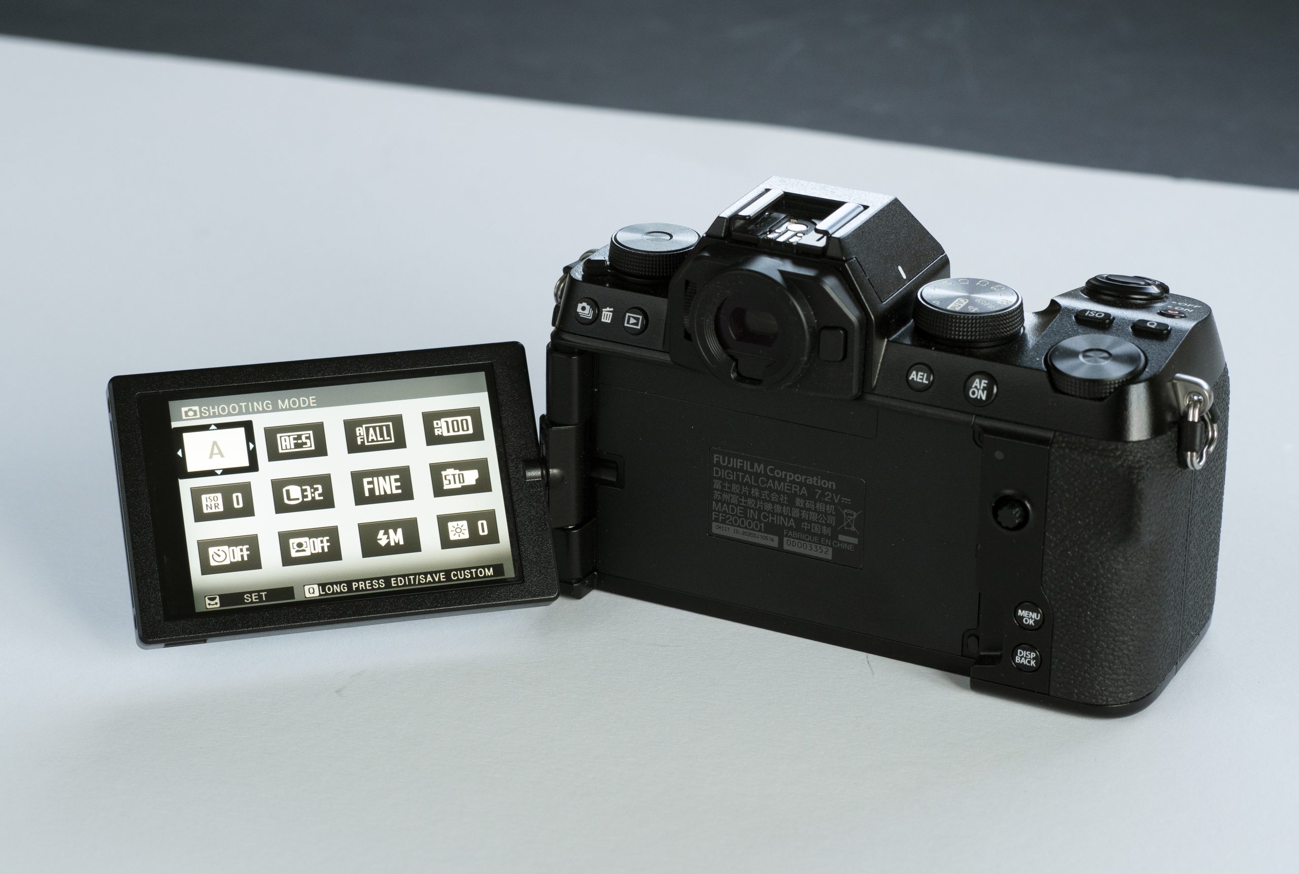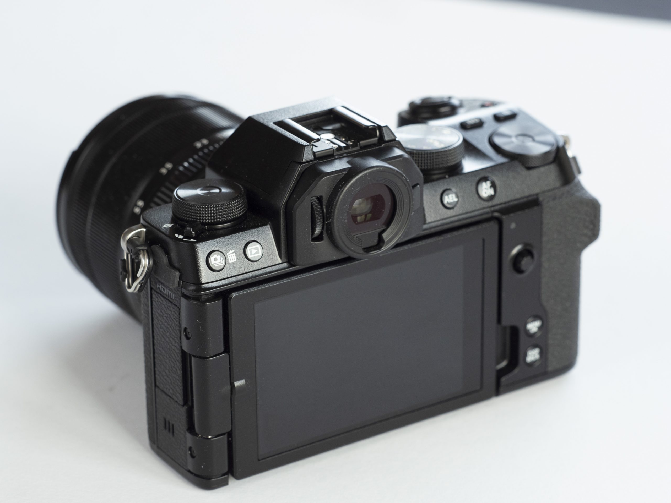 Kameraets OLED-søger har lidt lavere opløsning, og det samme har den vipbare touch-skærm, men intet af det er så vigtigt, at det er noget at trække ned for. I modsætning til X-T4 har kameraet en indbygget opklappelig blitz, som er praktisk, når man har brug for mere lys eller bare vil lyse skygger op.