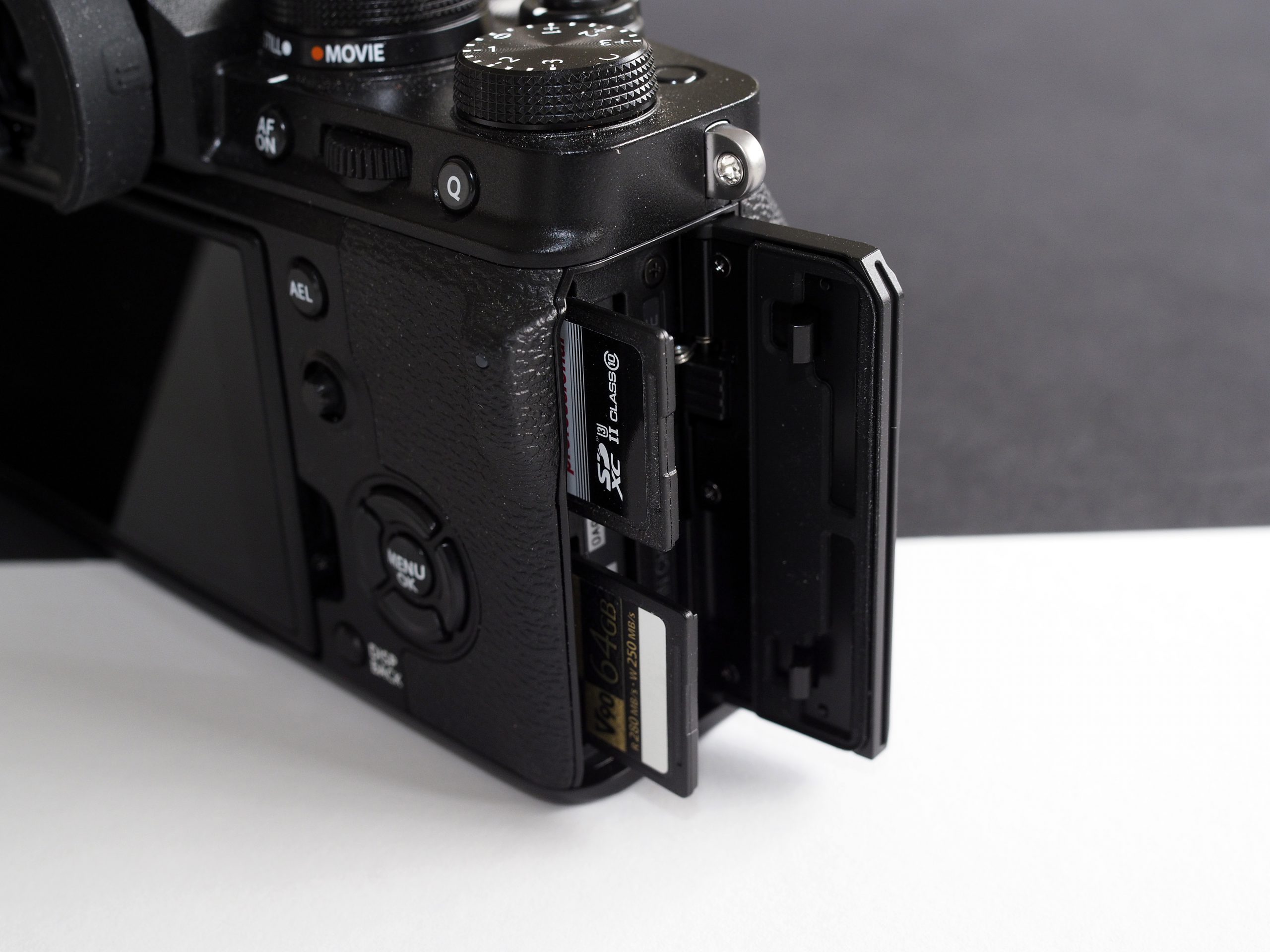 Håndgrebet, som vi kritiserede på X-T3, er blevet større og bedre, dog ikke lige så godt som på X-H1. Kameraet har også fået to kortpladser til SD-kort, der understøtter UHS-II. Det kan bruge vertikalgreb, der udvider batterikapaciteten yderligere fra de specificerede 500 billeder.