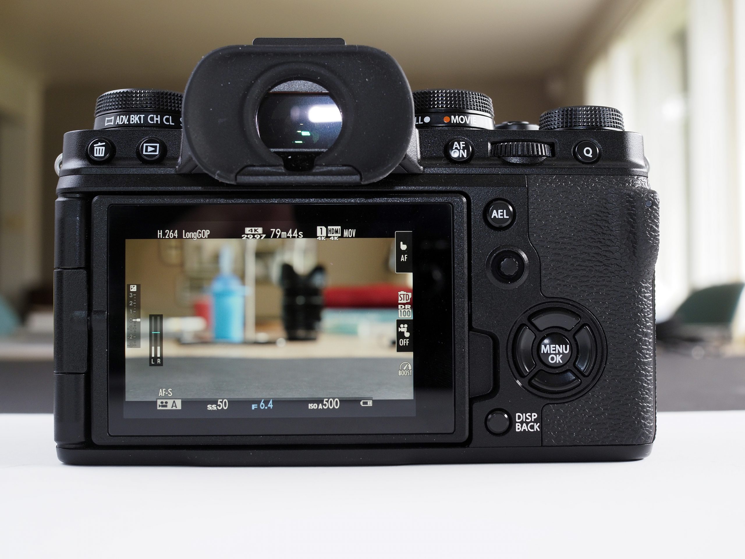 Det meste på kamerahuset er identisk med X-T3. Nogle knapper har skiftet plads, og skift mellem stillbilleder og video har erstattet knappen til lysmåling under lukkertidshjulet. Joystick-knappen er bevaret, men øjenmuslingen af gummi er blevet større, og X-T4 har fået en drejelig – ikke kun vipbar – touch-skærm. Hvilket gør kameraet endnu bedre egnet til håndholdt video.