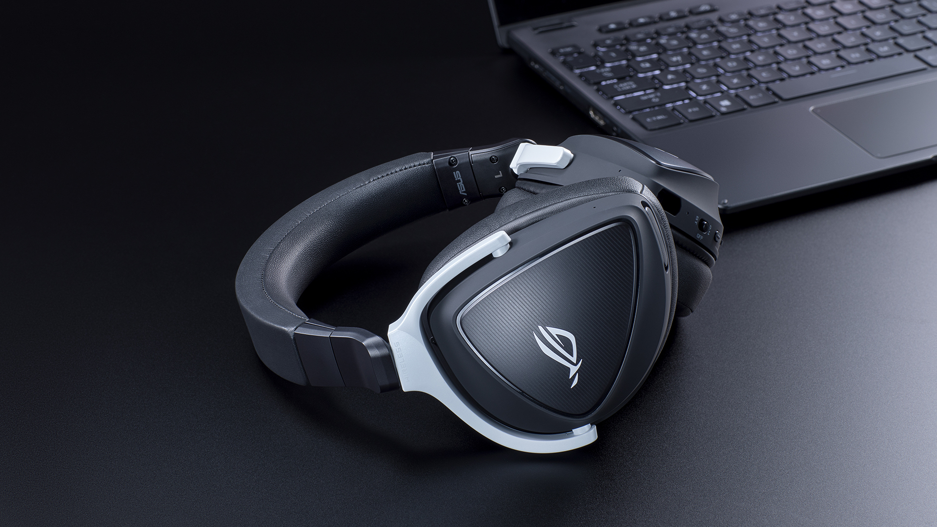 Alt på headsettet er sort, bortset fra ROG-logoet og metalbøjlen, der holder ørekopperne. Der medfølger to sæt ørepuder, så man kan vælge mellem kunstlæder og åndbart stof.