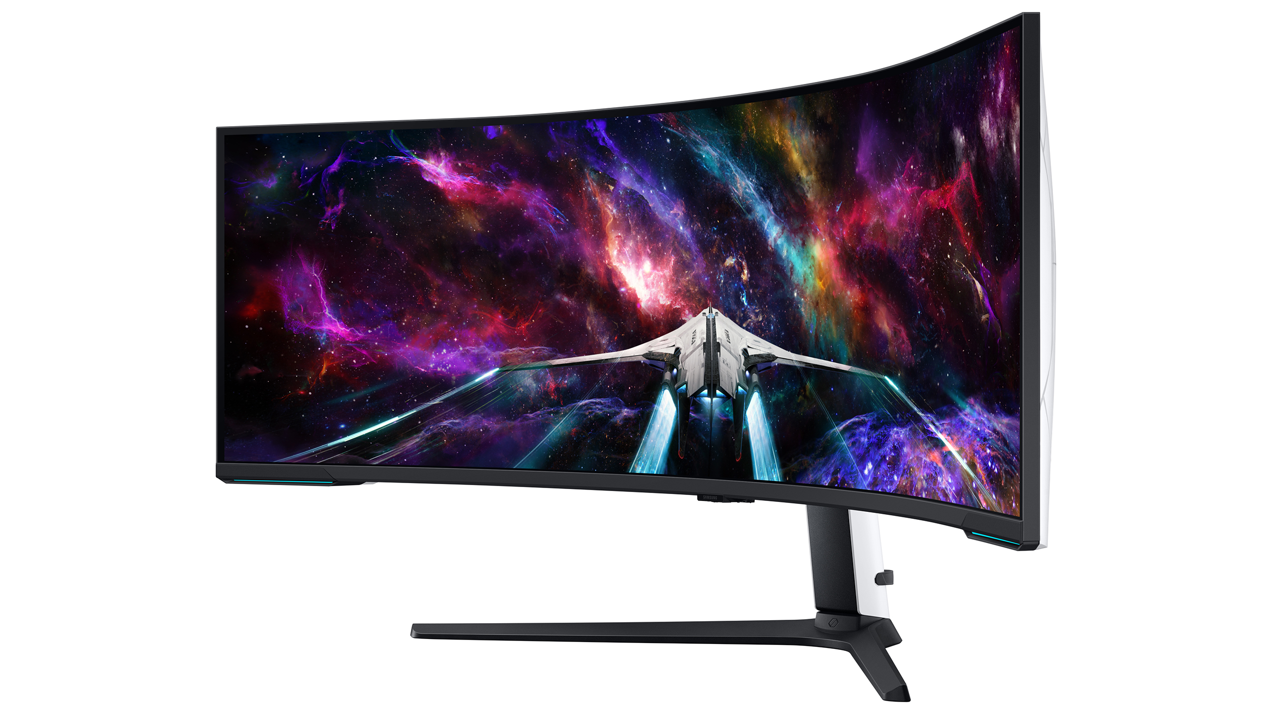 Odyssey Neo G9 tilhører klassen af ultrabrede skærme i forholdet 32:9. Billedet er altså mere end tre gange så bredt, som det er højt, og den godt 130 cm brede buede skærm dækker dermed hele det vandrette synsfelt, når man sidder foran den.