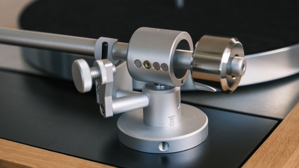 Majik LP12 er ikke helt så overdådig, men den leveres med den nye Krane-tonearm monteret på en ny aluminiumsbase. Armen er i øvrigt bygget efter Linns specifikationer af Clearaudio i Tyskland. Krane har et ophæng i wolfram og safir, et 5-polet stik på undersiden og magnetisk anti-skating, som kan justeres med en skrue på siden. Den har også en azimutjustering på armen og en sporingsvinkel, hvis du ønsker at bruge armen med en ikke-Linn-pickup.
