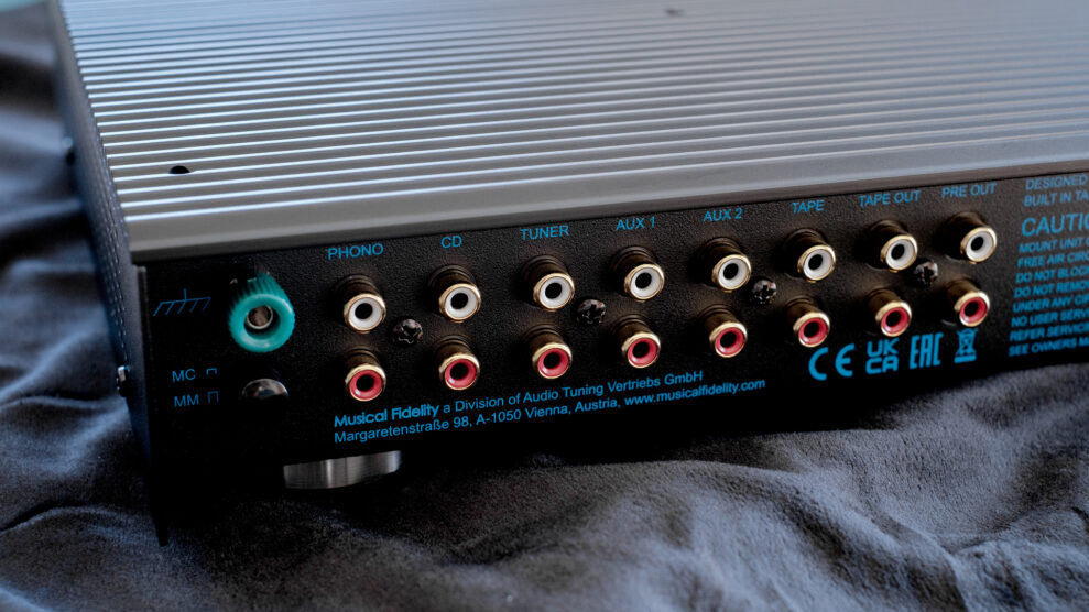 MM-kredsen har en indgangskapacitet på 100 pF, og impedansen er sat til 50 kOhm. De fleste MM-pickupper trives bedst ved en indgangskapacitet på 100-300 pF kapacitet og 47 kOhm, så det er bestemt inden for skiven. Impedansen i MC-kredsløbet er sat lidt højt til 1 kOhm, men det fungerer stadig perfekt. Musical Fidelity siger, at impedansen på MC-indgangen kun er nominel, og at den automatisk tilpasser sig pickuppen. De siger ikke mere om, hvilket område der dækkes.