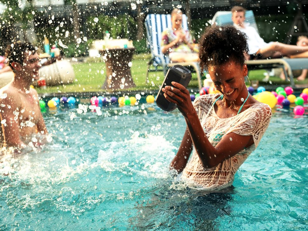 Den ser nærmest magen til ud med sit rørformede chassis, sine diskrete knapper på toppen til at styre afspilningen og et gummidæksel, der skjuler tilslutningerne. Højttaleren er vandtæt og derfor velegnet til stranden, og fås i ti lækre farver, hvilket er dobbelt så mange som før.