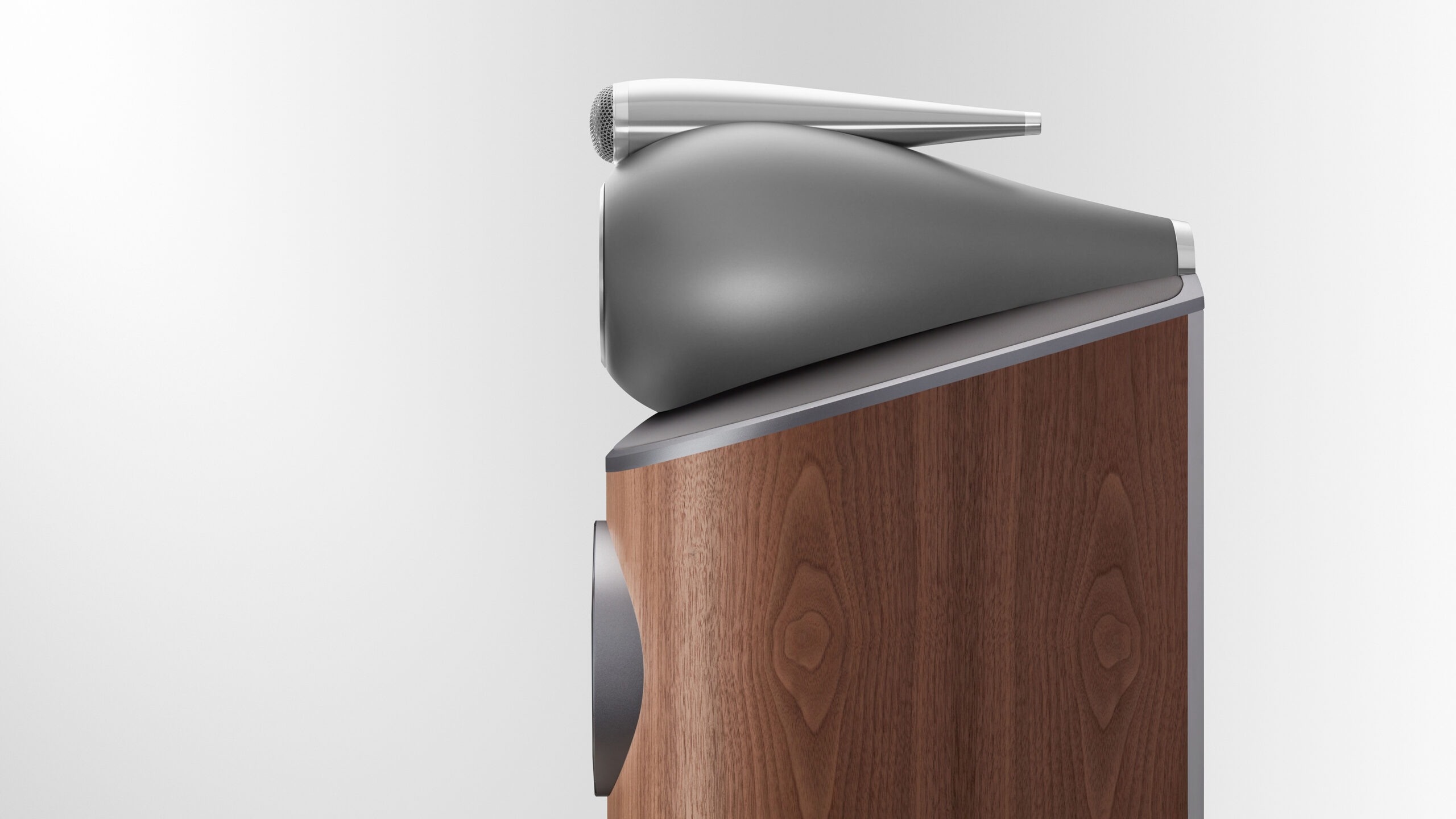 Det dråbeformede diskantkammer på toppen af 803 D4 er lidt længere end før for at minimere resonanser yderligere. En finjustering af maskinparken har været nødvendig, men heldigvis ikke en total udskiftning som den, der skulle til for at bygge D3-generationen. Dengang blev der investeret ca. 75 millioner kroner alene i maskiner. Skridtet op fra D2-serien var enormt, bl.a. med udbredt brug af robotteknologi i produktionslinjen for at perfektionere nøjagtigheden på højttalerne.