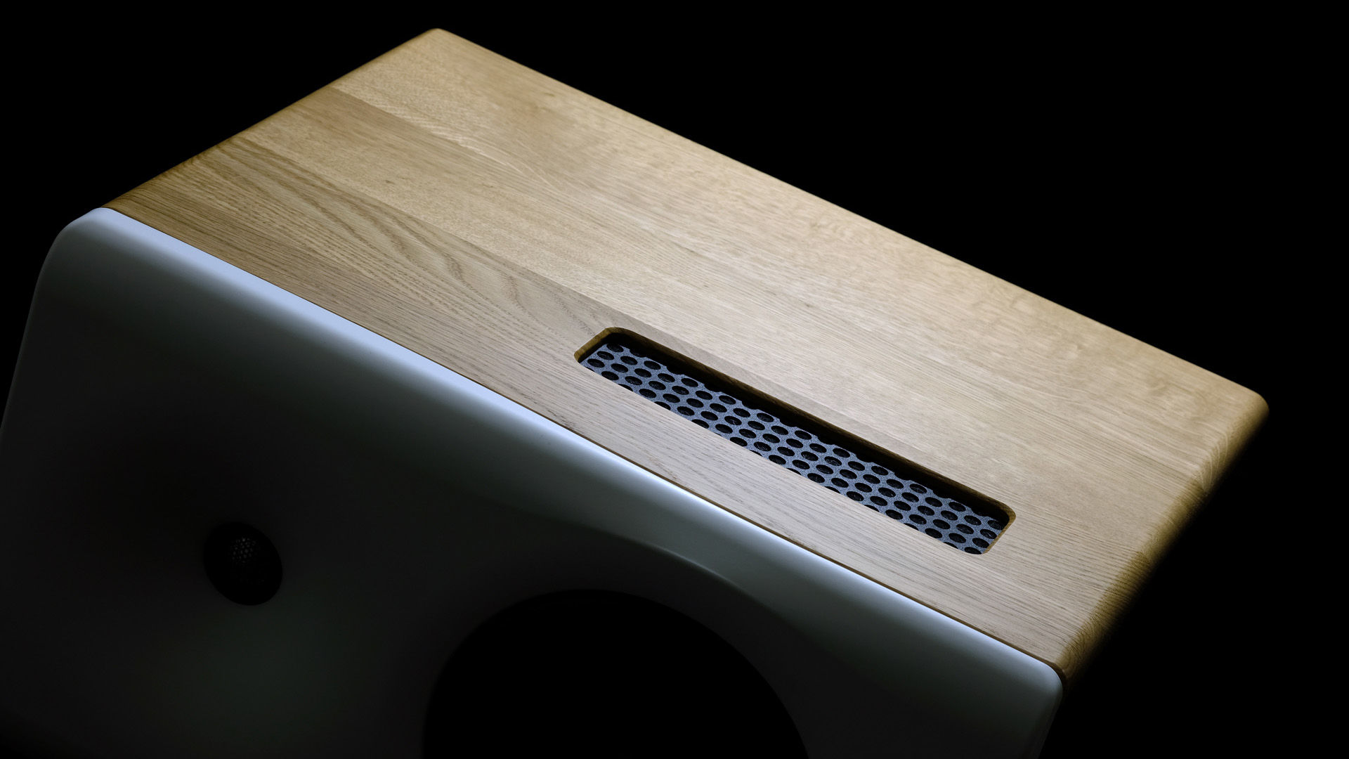 Selve kabinettet er både håndværksmæssigt og teknisk interessant. Den nydelige egetræsfinish er ikke finér; kabinettet er bygget af 20 mm tykke, massive egetræsplader. Resultatet er både pænt og meget lyddødt.