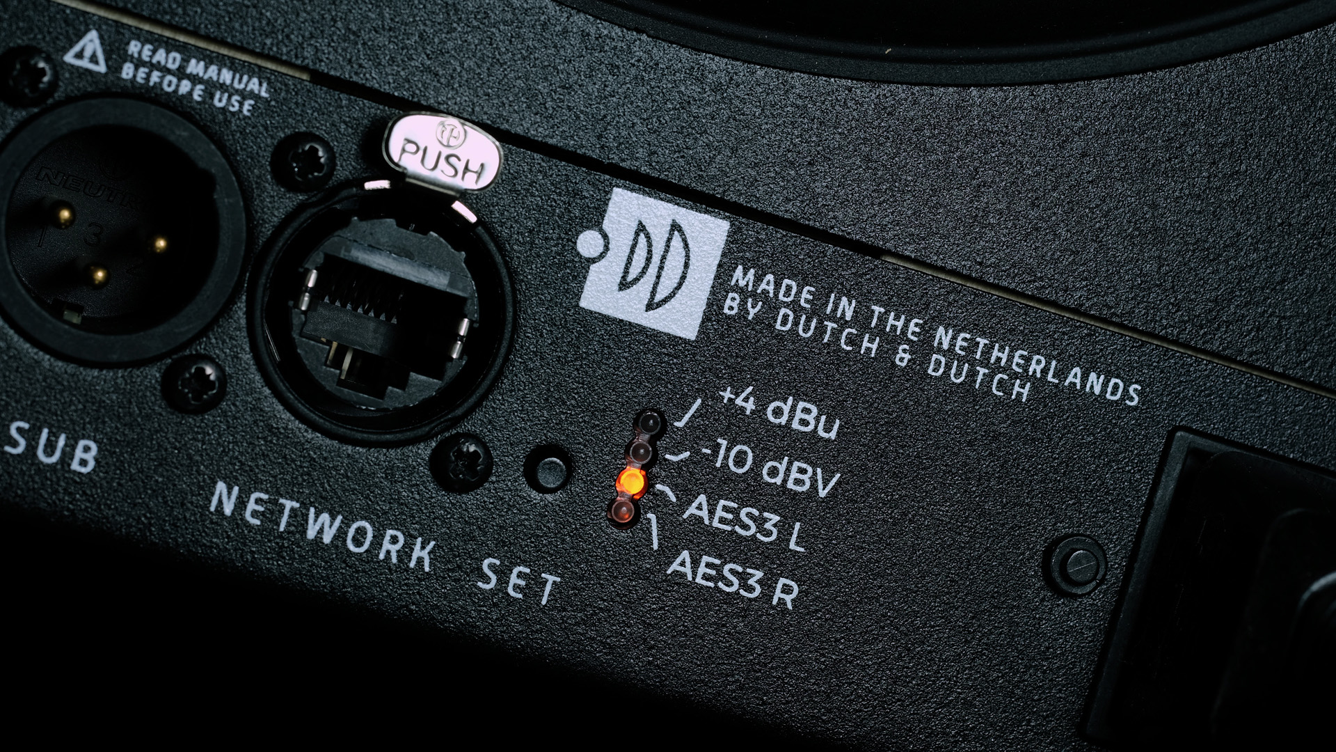 Tilslutningerne ligner også, hvad man finder på et professionelt produkt. Alle tilslutninger er professionelle XLR-bøsninger, og produktet bærer præg af at være skabt til teknisk kyndige brugere – eller brugere, der får højttalerne sat op og justeret ved leveringen.