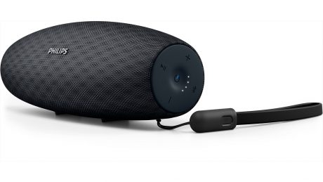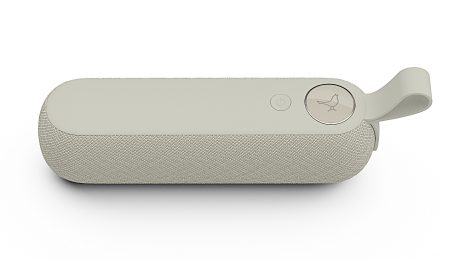 Det kraftige gummidækken afslører, at det er en vandtæt højttaler, og beskytter desuden mod stød. Højttaleren placeres på siden og ligger naturligt, så højttaler-enhederne peger skråt opad mod lytteren. Remmen gør den nem at bære rundt på og hænge op.