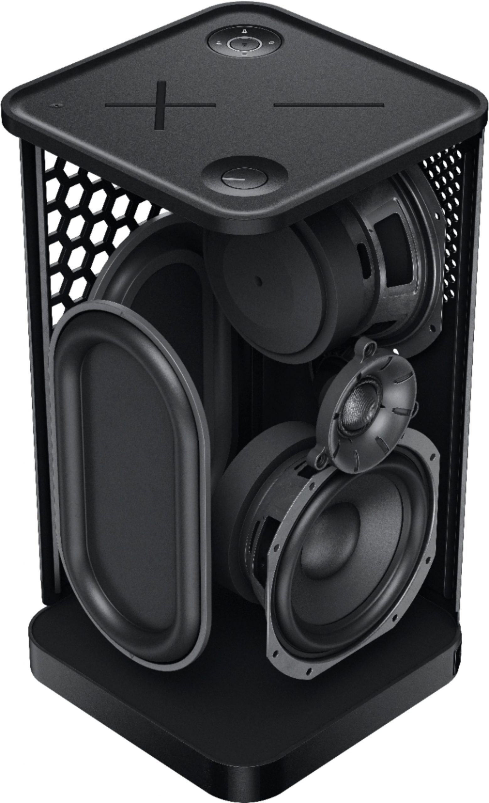 Med i alt seks højttaler-enheder får man et himmelsk lydtryk fra Hyperboom. UE siger, at den kan klare 100 decibel, hvilket stemmer fint med vores målinger. Rundt om den sidder der to bas-enheder, to slavebasser og to diskanter. Det kan man få meget lyd ud af.