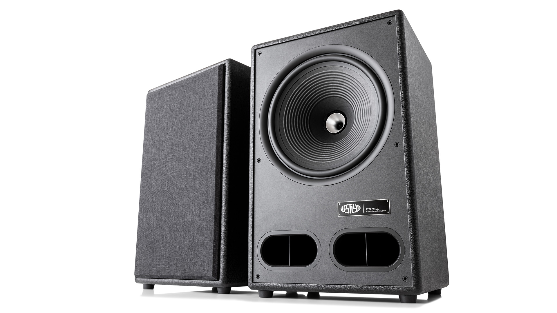 Vestlyd V15C er store! Med 74 cm i højden, 46 cm i bredden og 42 cm i dybden, er de umulige at overse. Og kabinettet i nopret sort nappa gør dem endnu mere iøjnefaldende. Hvilket ikke behøver at være en ulempe. For her er tale om højttalere, der kræver at blive lagt mærke til!