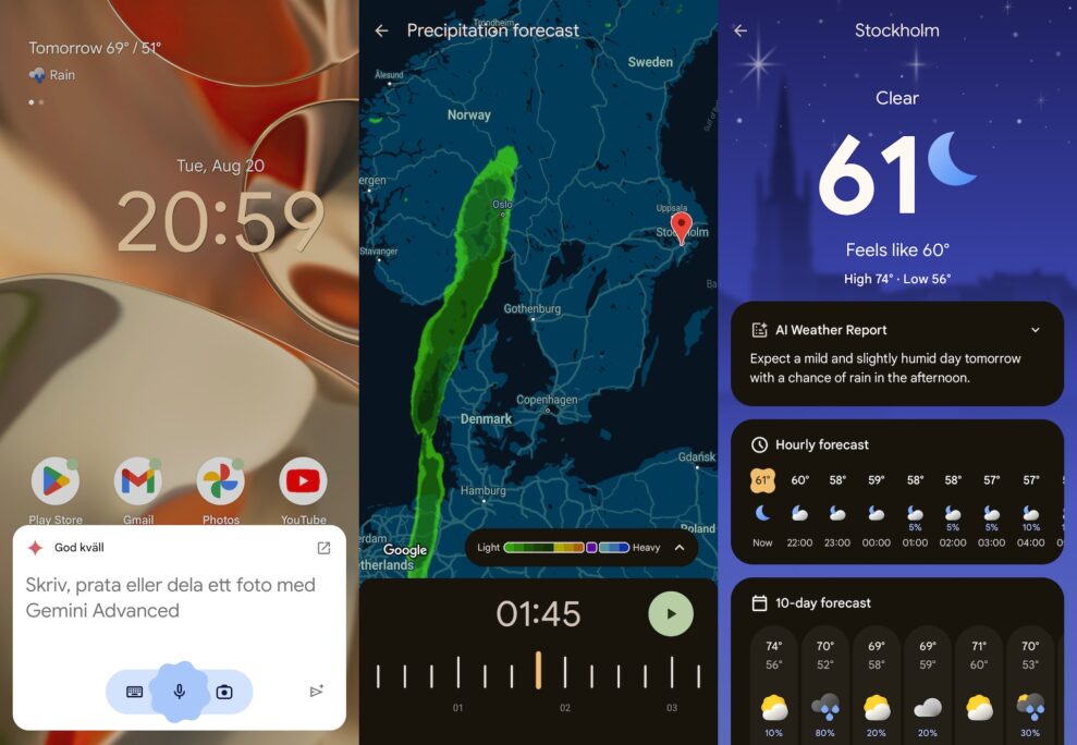 Og vi taler ikke engang om de forbedrede søgefunktioner, som Circle to Search, der blev lanceret i begyndelsen af året. I stedet handler det om, at chatbotten er integreret i Android på en dybere måde og kan interagere med Google Maps, YouTube, Gmail, Documents og Flights. Det betyder, at den kan hente oplysninger fra flere kilder og give dig mere personlige svar. Du kan også kalde Gemini frem i et vindue med et tryk på en knap, så den kan svare på spørgsmål om, hvad der er på din skærm, eller give dig flere oplysninger om den video, du ser. Eller du kan tale med Gemini Live, som du i modsætning til den gamle Google-assistent kan føre mere naturlige samtaler med. Du kan afbryde assistenten eller stille opfølgende spørgsmål. Dette er fremtiden.