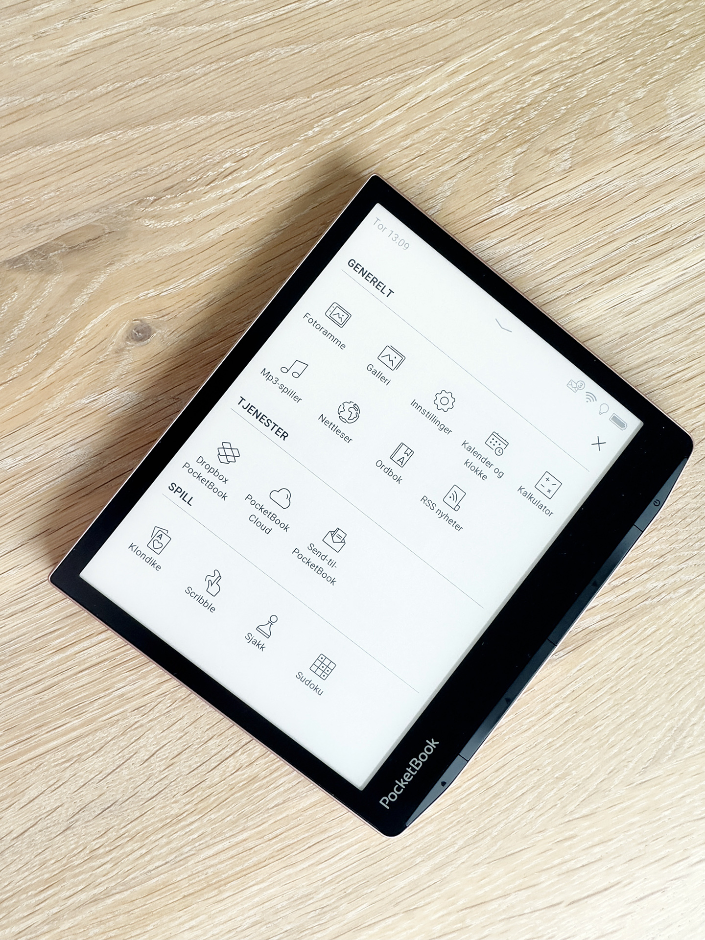 Den nye PocketBook Era er meget mindre. Mere Kindle-størrelse, om man vil, med en 7-tommers skærm, og en vældigt god en af slagsen. Med endnu højere opløsning, justerbar lysstyrke og farvetemperatur. Baggrundslyset kan også slukkes. Fint når man læser bøger i bælgmørke.