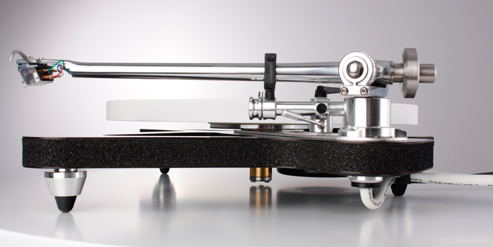 Regas dyreste håndbyggede tonearm, RB2000. Med ekstremt lav tolerance i armophænget, hvor det polerede armrør har det meste af sin masse centreret omkring ophængningen.