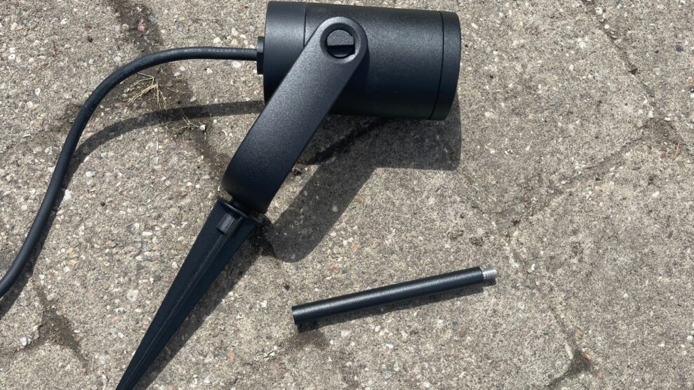 Spyddet er i metal, hvilket trækker op i denne test, og som den eneste har producenten vedlagt en lille forlængerpind, så spotten ikke behøver være helt nede ved jorden, men ganske elegant kan løftes ti centimeter. Godt tænkt, hvis den for eksempel skal stå i højt græs eller lyse en bygning med sokkel op.