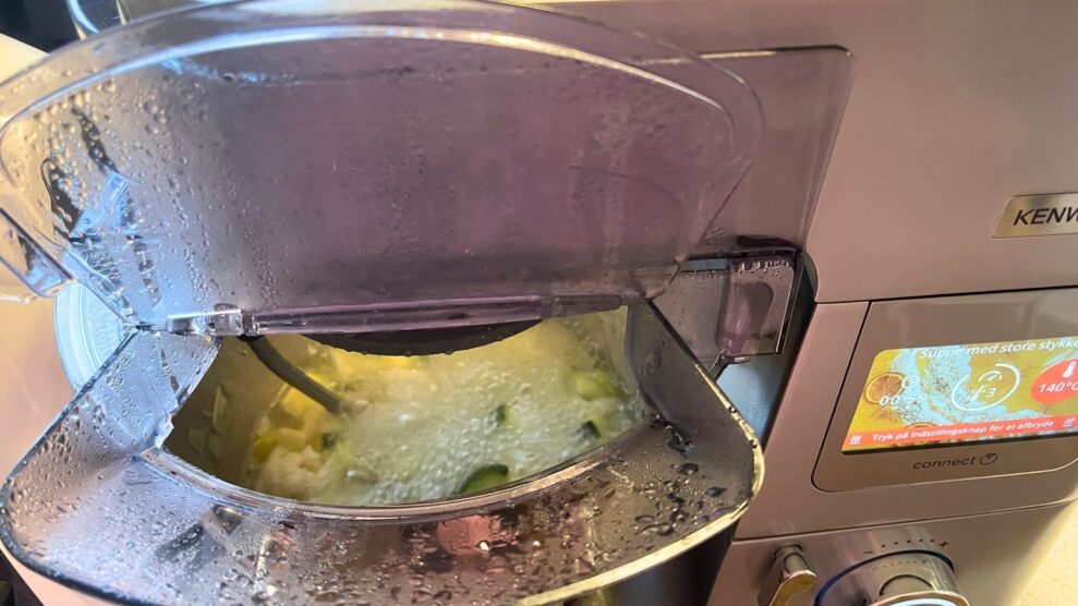 Men da grøntsagerne er møre, og vi skal til at blende suppen, bliver det lidt tricky. For Kenwood anbefaler ikke, at Cooking Chef XL bliver brugt til blendede supper, og det står hurtigt klar hvorfor.