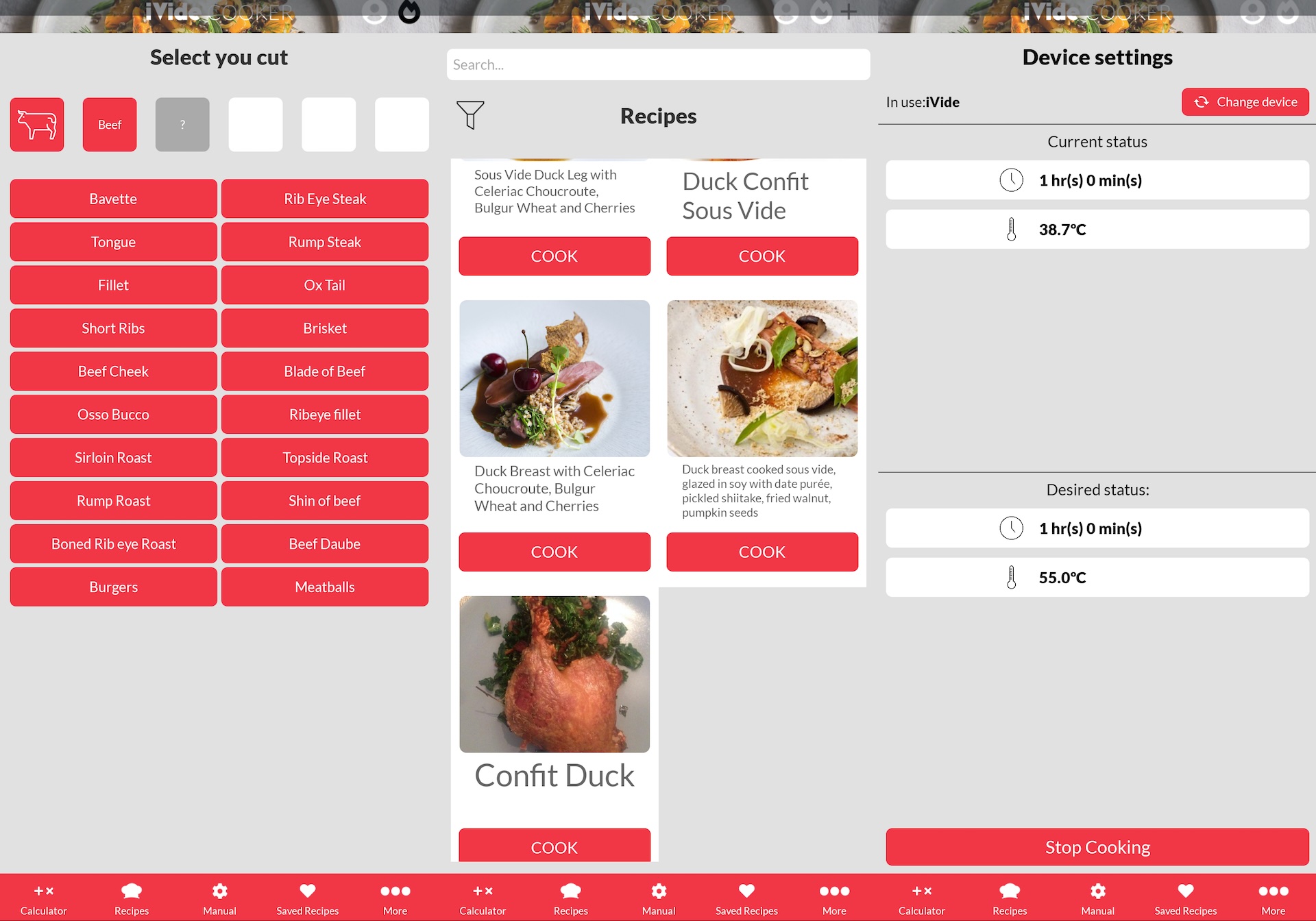 Desværre er app’en på engelsk, så man er nødt til at kende navnene på de forskellige udskæringer og retter. Temperaturen så dog korrekt ud i de opskrifter, vi tjekkede, så vi ville stole på at arbejde direkte fra appen. Takket være en høj udgangseffekt var iVide den hurtigste til at komme op på temperatur, hele 2,5 minutter hurtigere end den langsomste. Derefter holdt den temperaturen uden at afvige en eneste grad under hele tilberedningsprocessen.