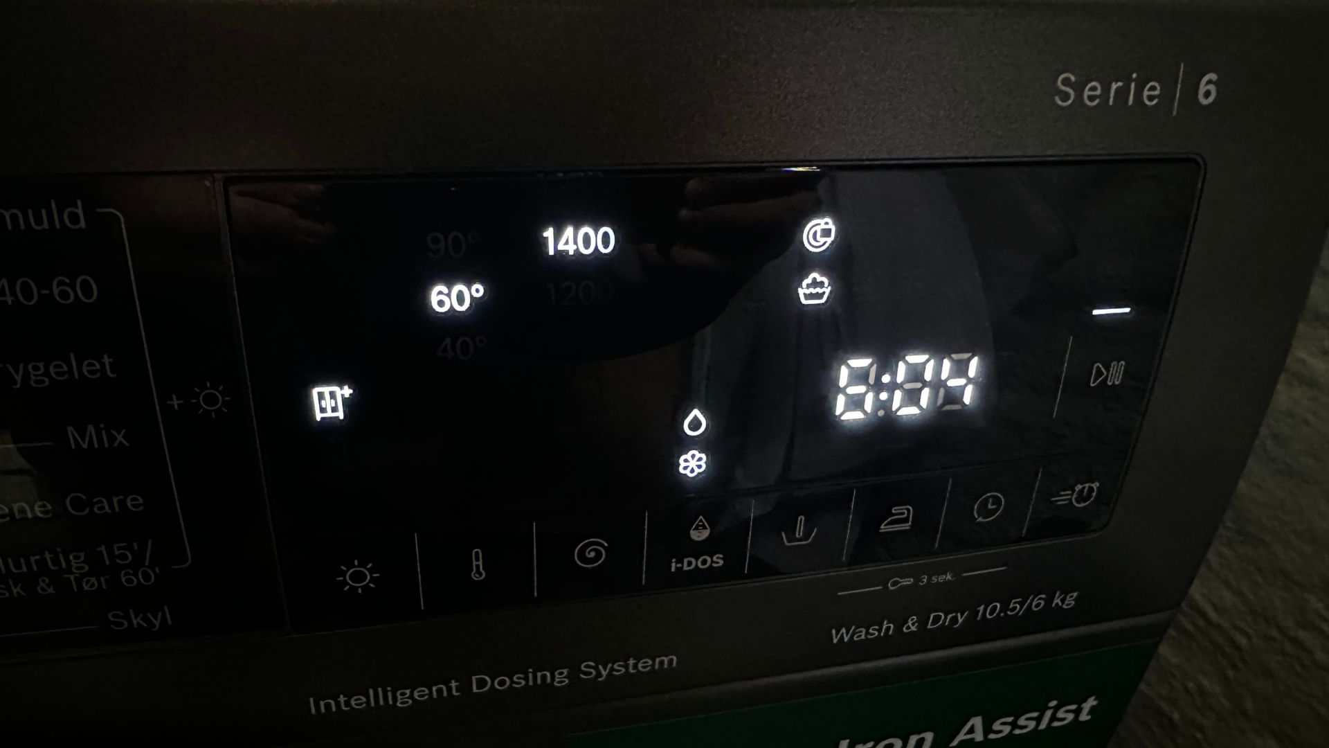 Starter du en vask og slår den automatiske tørrefunktion til (med tre forskellige niveauer af tørhed), vejer maskinen fra Bosch selv, hvor meget tøj du har lagt i, og den skriver i displayet præcis hvor mange timer og minutter, den vil bruge på at løse opgaven. Du kan bogstaveligt talt starte maskinen, sætte en alarm på din telefon og gå ned og hente nyvasket, rent og tørt tøj, når alarmen går.