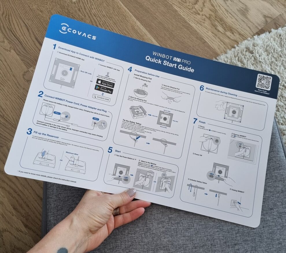 Vi er netop flyttet ind i vores nye bolig, og omkring os er der stadig gang i byggerier. Jeg er lidt næn om vores vinduer, så jeg gør faktisk lidt forarbejde og skyller det værste støv og skidt af ruderne først. Da vinduerne er tørre igen, følger jeg de næsten latterligt enkle instruktioner, og robotten begynder at bevæge sig hen over vinduet.