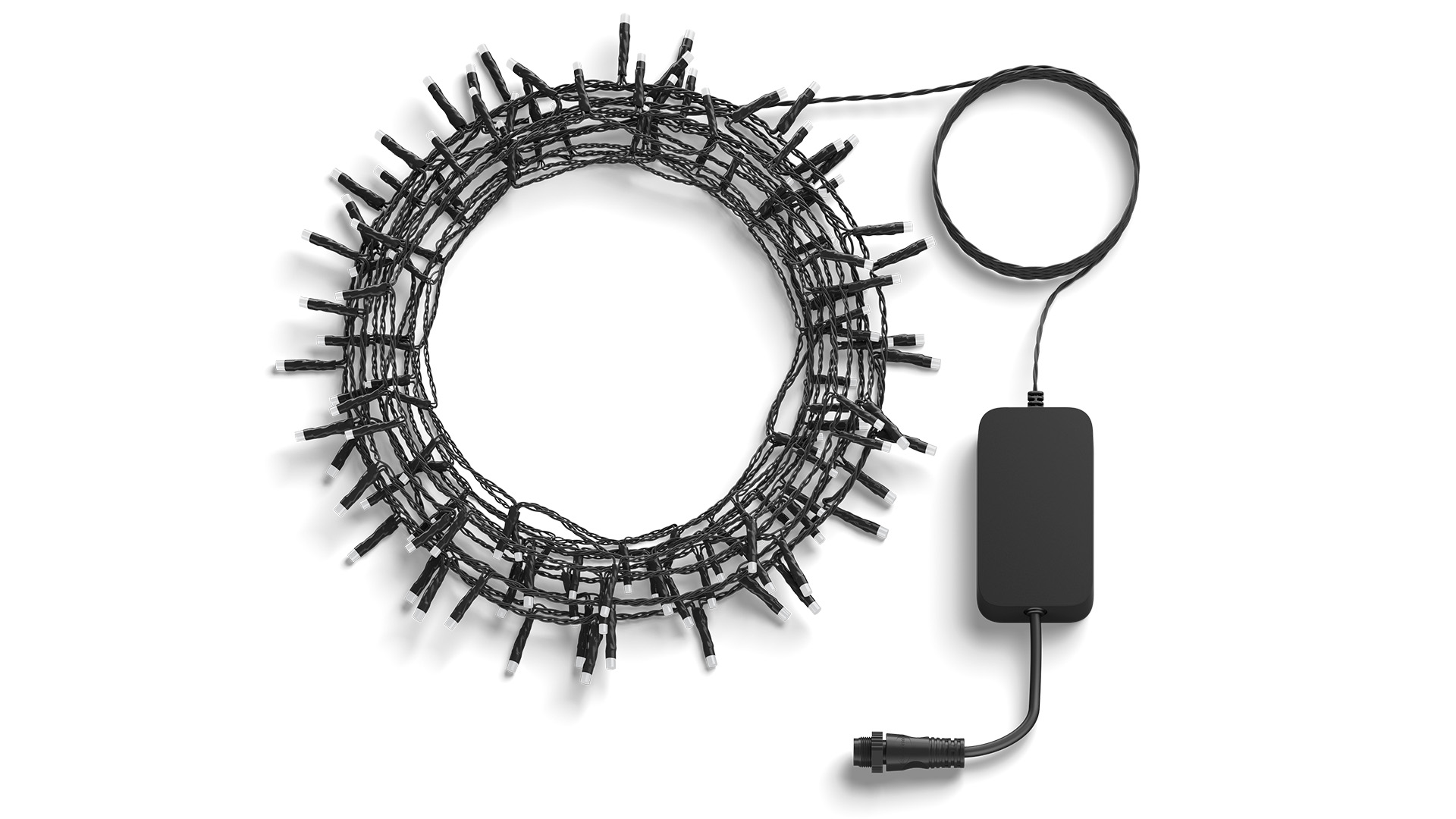 Men til sagen: Philips Hue Festavia ligner umiddelbart de fleste almindelige lyskæder. Kæden består af tre sammenflettede sorte ledninger, og de i alt 250 lysdioder er anbragt med otte centimeters mellemrum hen over de 20 meter i længden. En solid strømforsyning og en mindre styringsboks er forbindelsen til omverdenen. Selv om den fysiske kvalitet virker ret meget bedre end billigere lyskæder, er Festavia-kæden ikke vandtæt, og den er udelukkende beregnet til indendørs brug.