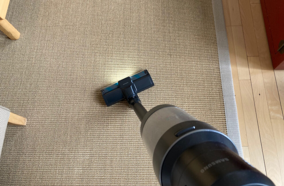 Anderledes for Jet AI gik det på stoftæpper, hvor støvsugerhovedets stofvalse ikke ville lege med, men næsten skulle presses hen over. Bedst virkede Bespoke Jet AI på klinker, gulve og linoleum.