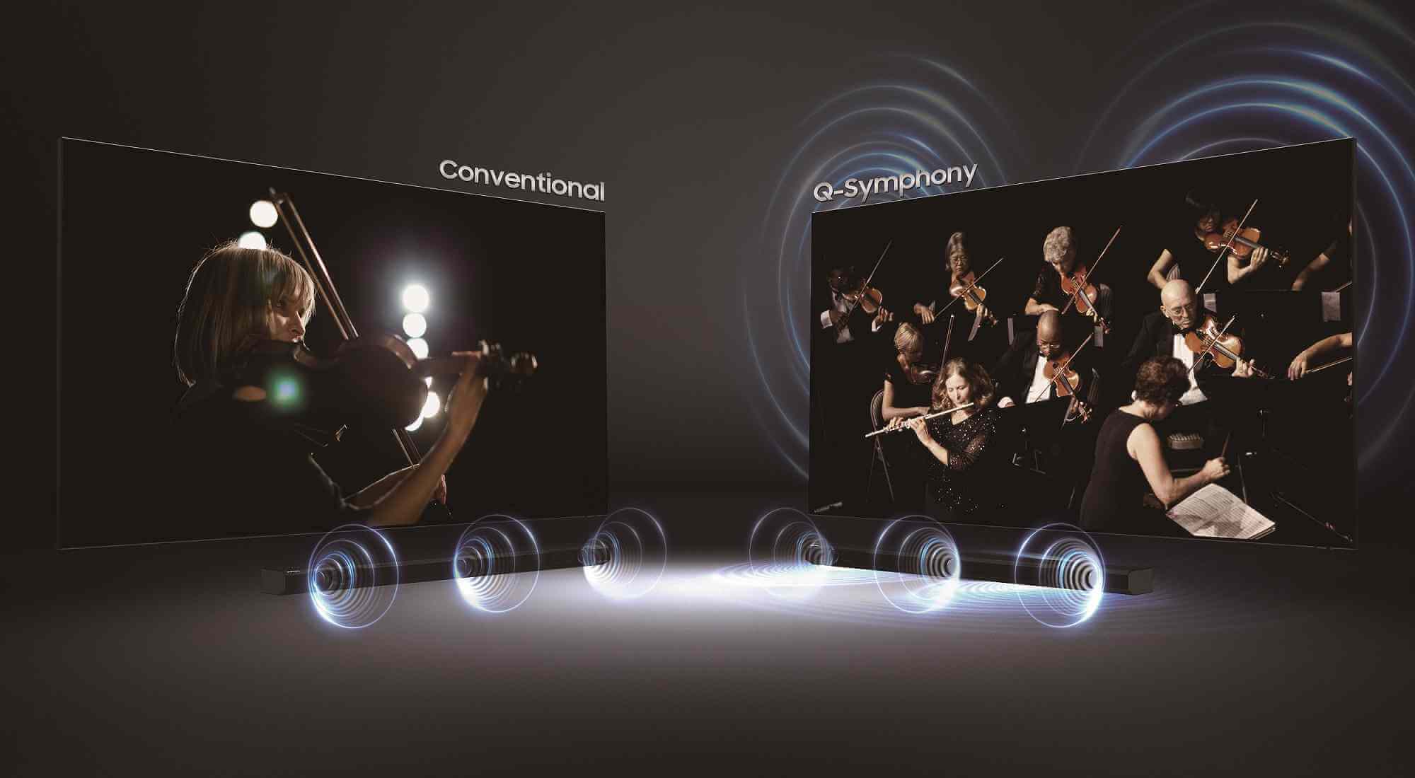 QN85A er udstyret med et lettere opgraderet lydsystem med højttalere både på undersiden og bagsiden af skærmen. Det giver et relativt stort og luftigt lydbillede.