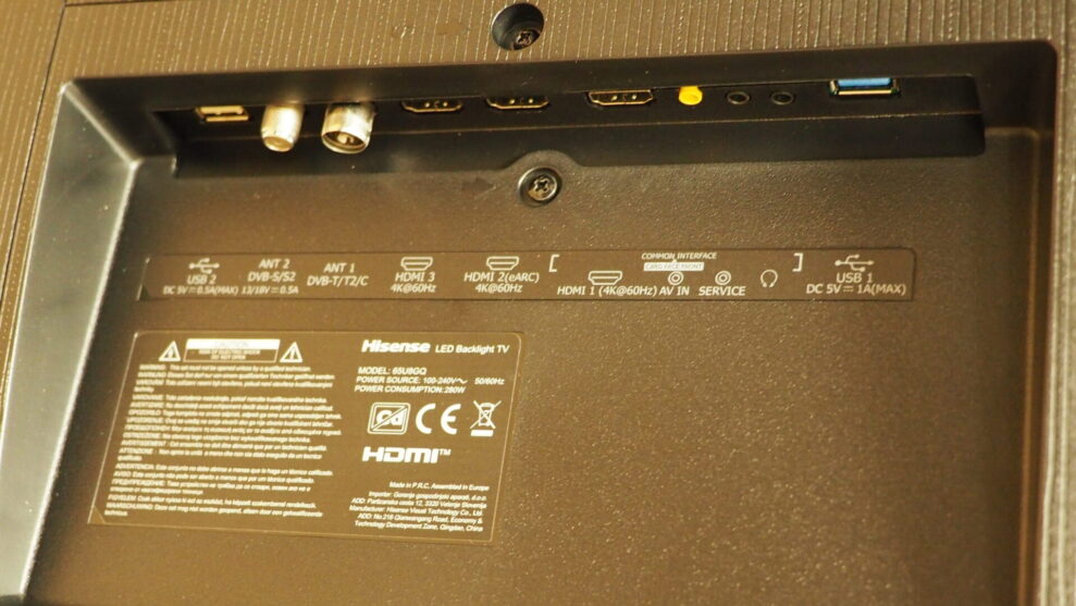 Hisense U8GQ har fire HDMI-indgange af typen 2.0b. Det er værd at bemærke, at de mangler nogle af de funktioner, vi kender fra den nyeste 2.1-standard.