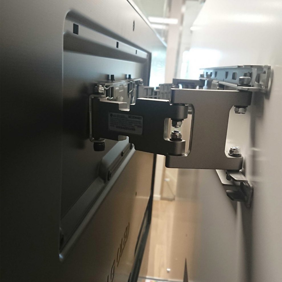Vægmontering er i sig selv ikke noget nyt – de fleste TV’er i dag (inklusive OLED) kan sættes op på væggen ved hjælp af såkaldte VESA-beslag. Her er der efterhånden mange elegante løsninger at vælge imellem. Alligevel er det bedste selvfølgelig, når TV-producenten gør sig den umage at bygge en løsning fra bunden!
