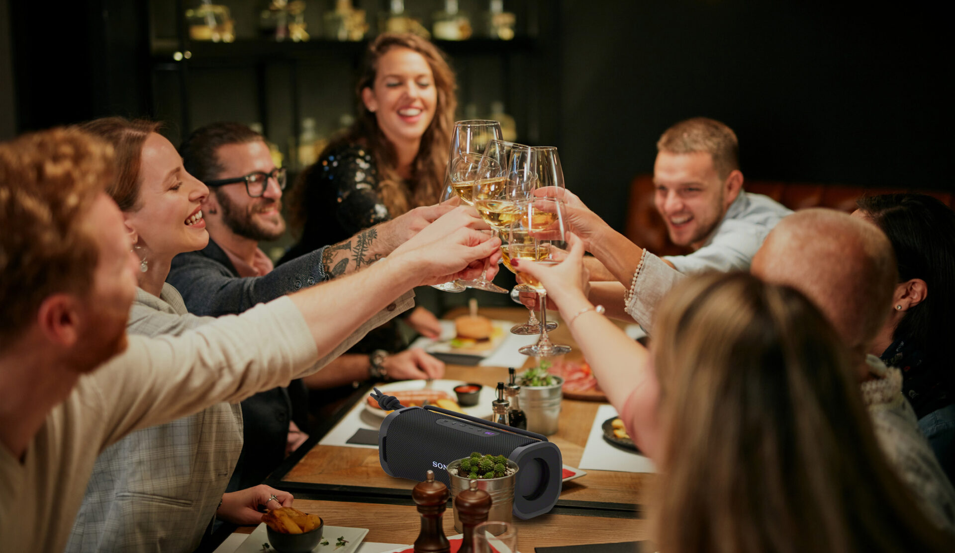 Lidt cool jazz gør drinken før måltidet lidt ekstra festlig. Det er slet ikke så svært. Alle mobiltelefoner, tablets og bærbare computere har Bluetooth, som du bruger til at parre dem med højttaleren. Tænd for parring på din bærbare enhed, hold knappen på højttaleren nede, og vælg den, når den vises på skærmen. Så er det bare at starte din streamingtjeneste eller lokale musiksamling. Du kan også justere lydstyrken fra din mobiltelefon.