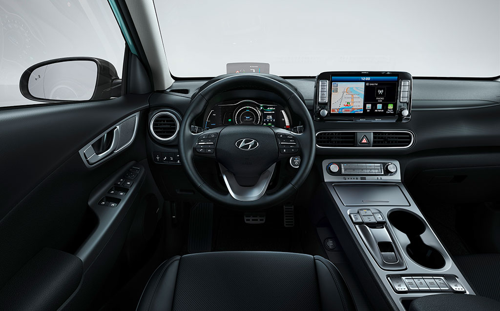 Hvor Hyundai Ioniq tilbyder Infinity-lydsystem, er anlægget i Kona fra KRELL. Lige så mange højttalere som i Ioniq, altså syv plus subwoofer. Forstærkereffekten er her i alt 400 watt.
