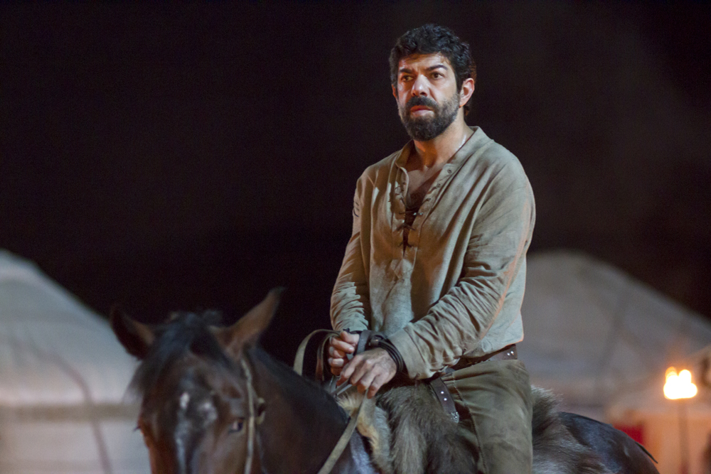 De fleste har hørt om venetianeren Marco Polos utrolige rejser i Østen i slutningen 1200-tallet. I første sæson møder vi den unge Marco Polo (Richelmy), der er fulgt med sin far, som er handelsrejsende, ad Silkevejen til Det Fjerne Østen. Her bliver han efterladt som “pant”, så faren og onklen kan drage videre, og bliver en vigtig rådgiver for den mongolske kejser Kublai Khan (en farverig og yderst interessant figur, spillet af Benedict Wong).