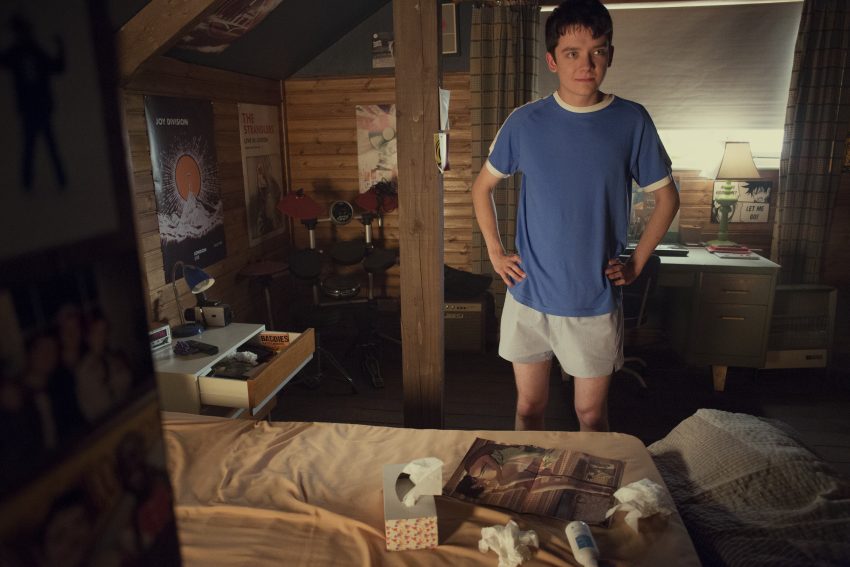Et gammelt ordsprog siger, at skomagerens børn går barfodede, og i Sex Educations tilfælde er “skomageren” samslivsterapeuten og sexologen Jean Milburn (Gillian “X-Files” Anderson). Hendes søn, Otis (Butterfield), går ikke barfodet, men har tydeligvis fået sit mål af seksuelle traumer og mentale barrierer. Den nørdede dreng er selvfølgelig jomfru, lider af overdrevet berøringsangst over for det modsatte køn og kan heller ikke få onanien til at fungere.