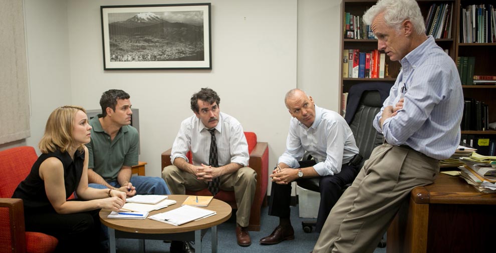 - Med: Mark Ruffalo, Michael Keaton, Rachel McAdams, Liev Schreiber, John Slattery, Stanley Tucci