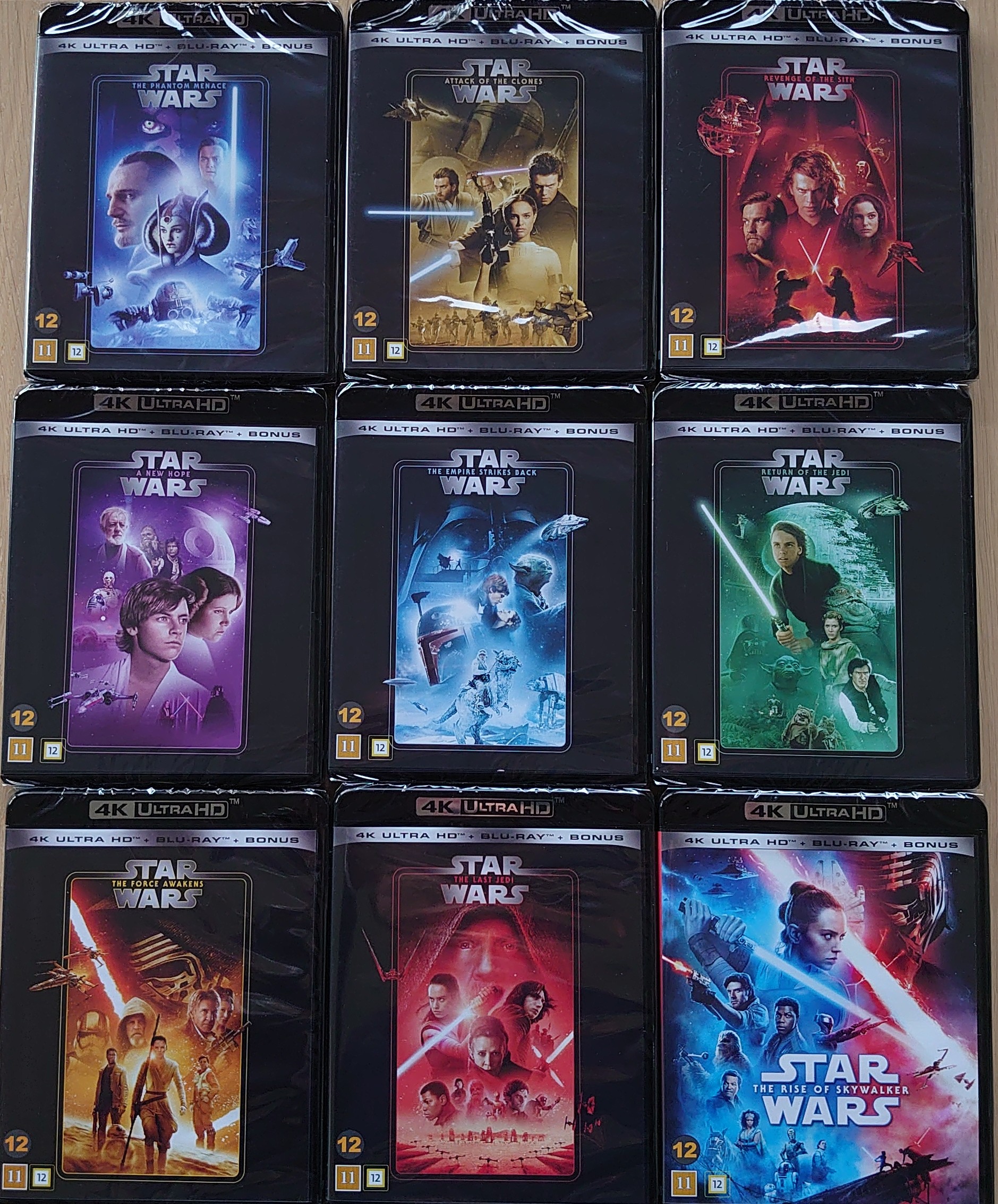 Du kan læse en (meget grundig) teknisk gennemgang af nyudgivelserne her, som både fås hver for sig og i en lækker samleboks. Boksen indeholder dog “kun” de ni film i den såkaldte Skywalker-saga og ikke Rogue One: A Star Wars Story og Solo: A Star Wars Story.