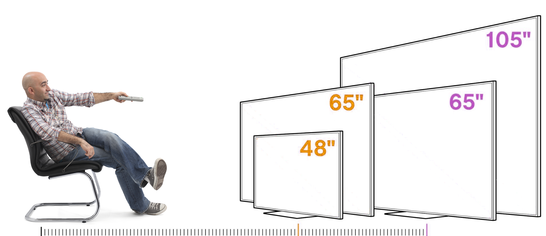 For at finde den rigtige TV-størrelse til netop dit rum er det vigtigt at vide, præcis hvilken betragtningsafstand du har. Så tag gerne målebåndet eller laseren frem og mål afstanden fra sofaen til der, hvor TV’et skal stå eller hænge!