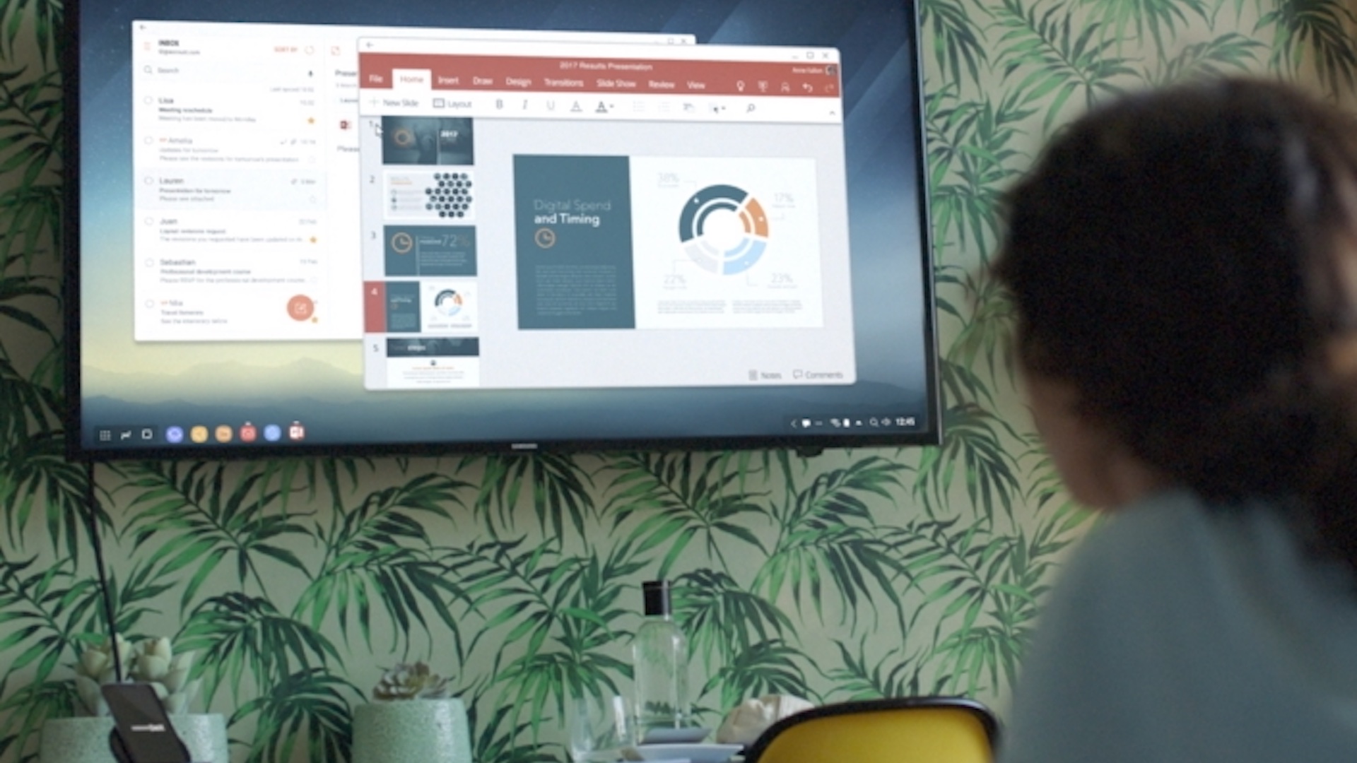 Navnet på løsningen er Samsung DeX, og der er tale om desktop-software, som lader dig bruge de fleste apps og filer på din Galaxy-smartphone i en Windows-lignende brugerflade via din almindelige computer eller sågar på dit smart-TV eller en PC-skærm.